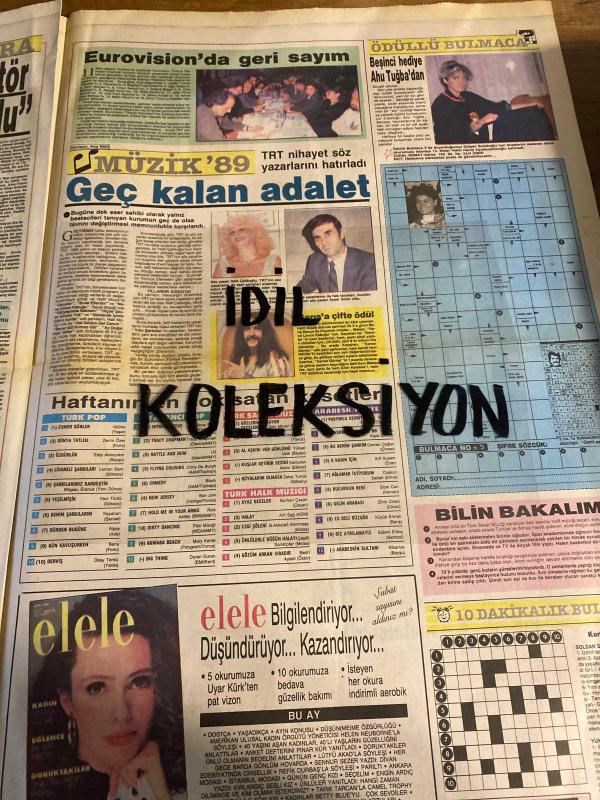 HAFTA SONU DERGİ - GAZETESİ EKSTRA EKİ DOĞUM GÜNÜ HEDİYESİ (TURKİSH -MAGAZINE - NEWSPAPER) - TAM TAKIM 8 SAYFADIR - 3 ŞUBAT 1989 - Sayı:5 -Hale Soygazi-Barış Pirhasan-Belkıs Akkale-Sami Yılmaztürk-Tanju Çolak-Halil Albayrak-Selma Güneri-Leon Rubinştayn-Burhan Çaçan-Muazzez Abacı-Nihal Arda-Zeki Müren-Ferdi Tayfur-Turan Çevik-Nazan Şoray-Sacit Aslan-AhunTuğba-Latif Demirbağ-Yılmaz Duru-Levent Kırca-Hasan Fehmi Güneş-Hülya Süer-Reha Yeprem-Nergis Tekin-Atilla Yiğit-Nergis Tekin-Engin İnal-Eşref Kolçak-Sevim Çalışgir-Savaş Taner-Müjde Ar-Ahu Tuğba-Barış Manço-Halit Çelikoğlu-elele dergisi-Zerrin Doğan-Playmen dergisi-Gülen Andak-Ayşe Tunalı-Gencay Gürün-İsmet Ay-Kandemir Konduk-Füsun Önal-Macit Koper-Neşe Erberk-Yüksel Uzel-Osman Bayşu-Hülya Koçyiğit-Melek Koçyiğit-Shirley Jane Mercler-Udi Coşkun-Nejat Uygur-Tolga Aşkıner-, Orhan Olcay tarafından kaleme alınmıştır. Eser Ahmet Erçalık editörlüğünde hazırlanmıştır. Kitap Hürriyet gazetecilik tarafından yayınlanmıştır. 8 sayfadır. HAFTA SONU DERGİ - GAZETESİ EKSTRA EKİ DOĞUM GÜNÜ HEDİYESİ (TURKİSH -MAGAZINE - NEWSPAPER) - TAM TAKIM 8 SAYFADIR - 3 ŞUBAT 1989 - Sayı:5 -Hale Soygazi-Barış Pirhasan-Belkıs Akkale-Sami Yılmaztürk-Tanju Çolak-Halil Albayrak-Selma Güneri-Leon Rubinştayn-Burhan Çaçan-Muazzez Abacı-Nihal Arda-Zeki Müren-Ferdi Tayfur-Turan Çevik-Nazan Şoray-Sacit Aslan-AhunTuğba-Latif Demirbağ-Yılmaz Duru-Levent Kırca-Hasan Fehmi Güneş-Hülya Süer-Reha Yeprem-Nergis Tekin-Atilla Yiğit-Nergis Tekin-Engin İnal-Eşref Kolçak-Sevim Çalışgir-Savaş Taner-Müjde Ar-Ahu Tuğba-Barış Manço-Halit Çelikoğlu-elele dergisi-Zerrin Doğan-Playmen dergisi-Gülen Andak-Ayşe Tunalı-Gencay Gürün-İsmet Ay-Kandemir Konduk-Füsun Önal-Macit Koper-Neşe Erberk-Yüksel Uzel-Osman Bayşu-Hülya Koçyiğit-Melek Koçyiğit-Shirley Jane Mercler-Udi Coşkun-Nejat Uygur-Tolga Aşkıner- adlı eser Türkçe dilindedir.
