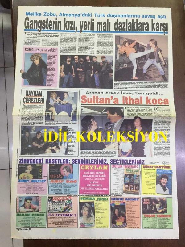 HAFTA SONU GAZETESİ, 1980'LER - (TEK YAPRAK, 2 SAYFA) - MELİKE ZOBU ALMANYA'DA TÜRK DÜŞMANLARINA SAVAŞ AÇTI - SULTAN'A İTHAL KOCA, TÜRKAN ŞORAY - ZİRVEDEKİ KASETLER, ALBÜM REKLAMLARI, ARİF SAĞ, AHMET AKBULUT, HAKAN PEKER, SEMİHA YANKI, CEYLAN, SEVGİ AKSOY, GÜNAY CANTÜRK, YAŞAR YAĞMUR - YILDIZ EMEN, ŞÜKRAN ÇELEBİ, IŞIN ÇELEBİ, ERWIN J. RIECK, HEINRICH SEDLACEK, ÇİĞDEM ÖNER, ERKUNT ÖNER - REFİK AŞKIN, RÜVEYDA BİBİOĞLU, EDİP BİBİOĞLU, ŞAFAK BİBİOĞLU - MİŞLİN MOROVA, SİBEL ÇARMIKLI - BEKİR İRDEM, YASEMİN VELİBEŞE, EROL DALLI, TANJU DALLI, ASLI ÜSTEN, METİN ÜSTEN - VİVET VURALER, AYLİN MENGÜÇ adlı eser Türkçe dilindedir.
