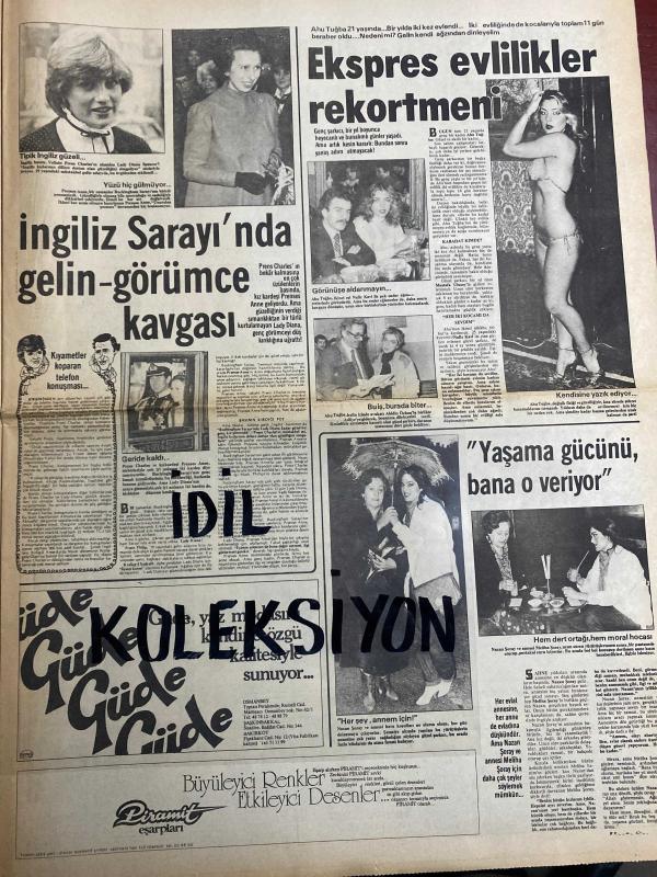 HAFTA SONU GAZETESİ DOĞUM GÜNÜ GAZETESİ (TURKİSH NEWSPAPER) - 15 MAYIS 1981 - Yıl:5 Sayı:20-Huysuz Virjin-Seyfi Dursunoğlu-Müjde Ar-Kadir İnanır-Nafiz Kavi-Bahar erdeniz-Ömer Tatlıses -Hülya Koçyiğit - Melek Koçyiğit - Nurettin Taylaner - Ünal Kutsal - Bülent Ersoy - Erdal İnceken - Fatma Girik - Memduh Ün - Talha Özmen - Ahu Tuğba - Prens Charles - Leydi Diana - Adalet Tatlıses - İbrahim Tatlıses - Şenay - Nilüfer - Ersen “Annem Evlenemez” - Londra dönüşü bu sürprizle karşılaştım - Melek Koçyiğit harıl harıl bebek giysileri hazırlıyor - Huyusuz da ameliyat oldu - Ben güzel bir kadınım - Body Veil - İşte uyum işte güzellik - Günümüz ana gözüyle - Tirsi spor istiyor - Atatürk şerefine… - Başkent değişiyor - Ah bu unutkan kadınlar - “İşte benim sevgilim” - Çifte mutluluk buna denir - Büyük piyangonun şerefine - Şerefe karıcığım - İyi ki doğdun Talha - Kadından neyimiz eksik - İngiliz Sarayı’nda gelin-görümce kavgası - Ekspres evlilikler rekortmeni - Görünce aldanmayın - Buluş burada bi adlı eser, Kitap > Süreli Yayınlar > Gazeteler > Türkiye > Genel > Günlük kategorisinde İkinci El olarak satıştadır.