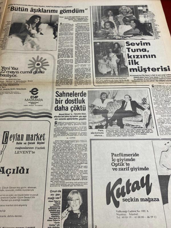 HAFTA SONU GAZETESİ DOĞUM GÜNÜ GAZETESİ (TURKİSH NEWSPAPER) - 15 MAYIS 1981 - Yıl:5 Sayı:20-Huysuz Virjin-Seyfi Dursunoğlu-Müjde Ar-Kadir İnanır-Nafiz Kavi-Bahar erdeniz-Ömer Tatlıses -Hülya Koçyiğit - Melek Koçyiğit - Nurettin Taylaner - Ünal Kutsal - Bülent Ersoy - Erdal İnceken - Fatma Girik - Memduh Ün - Talha Özmen - Ahu Tuğba - Prens Charles - Leydi Diana - Adalet Tatlıses - İbrahim Tatlıses - Şenay - Nilüfer - Ersen “Annem Evlenemez” - Londra dönüşü bu sürprizle karşılaştım - Melek Koçyiğit harıl harıl bebek giysileri hazırlıyor - Huyusuz da ameliyat oldu - Ben güzel bir kadınım - Body Veil - İşte uyum işte güzellik - Günümüz ana gözüyle - Tirsi spor istiyor - Atatürk şerefine… - Başkent değişiyor - Ah bu unutkan kadınlar - “İşte benim sevgilim” - Çifte mutluluk buna denir - Büyük piyangonun şerefine - Şerefe karıcığım - İyi ki doğdun Talha - Kadından neyimiz eksik - İngiliz Sarayı’nda gelin-görümce kavgası - Ekspres evlilikler rekortmeni - Görünce aldanmayın - Buluş burada bi, Tahsin Öztekin tarafından kaleme alınmıştır. Eser Çetin Emeç editörlüğünde hazırlanmıştır. Kitap Hürriyet gazetecilik tarafından yayınlanmıştır. 12 sayfadır. HAFTA SONU GAZETESİ DOĞUM GÜNÜ GAZETESİ (TURKİSH NEWSPAPER) - 15 MAYIS 1981 - Yıl:5 Sayı:20-Huysuz Virjin-Seyfi Dursunoğlu-Müjde Ar-Kadir İnanır-Nafiz Kavi-Bahar erdeniz-Ömer Tatlıses -Hülya Koçyiğit - Melek Koçyiğit - Nurettin Taylaner - Ünal Kutsal - Bülent Ersoy - Erdal İnceken - Fatma Girik - Memduh Ün - Talha Özmen - Ahu Tuğba - Prens Charles - Leydi Diana - Adalet Tatlıses - İbrahim Tatlıses - Şenay - Nilüfer - Ersen “Annem Evlenemez” - Londra dönüşü bu sürprizle karşılaştım - Melek Koçyiğit harıl harıl bebek giysileri hazırlıyor - Huyusuz da ameliyat oldu - Ben güzel bir kadınım - Body Veil - İşte uyum işte güzellik - Günümüz ana gözüyle - Tirsi spor istiyor - Atatürk şerefine… - Başkent değişiyor - Ah bu unutkan kadınlar - “İşte benim sevgilim” - Çifte mutluluk buna denir - Büyük piyangonun şerefine - Şerefe karıcığım - İyi ki doğdun Talha - Kadından neyimiz eksik - İngiliz Sarayı’nda gelin-görümce kavgası - Ekspres evlilikler rekortmeni - Görünce aldanmayın - Buluş burada bi adlı eser Türkçe dilindedir.