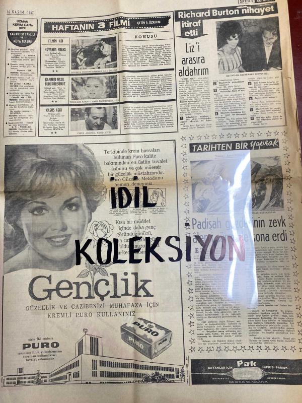 HAFTA SONU GAZETESİ DOĞUM GÜNÜ GAZETESİ (TURKİSH NEWSPAPER) - 16 KASIM 1967 - Yıl:1 Sayı:43- Yeni Çıkan Plaklar listesi -Zeki Müren-Fikret Hakan-Sevda Ferdağ-Tamer Yiğit-Zaliha-Sadıç Zaliha-Gülibin Eray-Peri-Han-Sevim Şengül-Durul Gence-Şahınbaş-Fatma Girik-İbrahim Solmaz-Ayla Gürses-George Lutrow-Altan Armağan-Jean Simmons-Richard Burton-Liz Taylor-Bayan Bayar-Bulent Karacan-Ali Şükrü-Muhterem Nur-Kemal İnci-Ümit Yaşar Konsomatris ile başbaşa-Onunla tek müşterek yönümüz sevmek oldu-Tamer Yiğit’le barıştı diye Fikret Hakan Sevda Ferdağı dövdü-Zaliha eski menajeri ile kavga etti-Futbolcuların rekabeti aşk sahasına döküldü-Gülibin Eray Mısır’da beş film çevirecek-Eray’ın çevireceği filmler renkli sinemaskop olacak-Sevim Şengül Peri-Han ile kavga etti-Kavga neticesi Sevim Şengül sahneye çıkmadı-Jet sosyete ve artistler Dolce Vita yaşadılar-Durul Gence ve balerin-Şahınbaş ile İsviçreli-Kendilerinden geçmişler-Sabaha kadar süren alemde herkes gönlünce eğlendi-Yeni dansları öğretiyoruz adlı eser, Kitap > Süreli Yayınlar > Gazeteler > Türkiye > Genel > Günlük kategorisinde İkinci El olarak satıştadır.