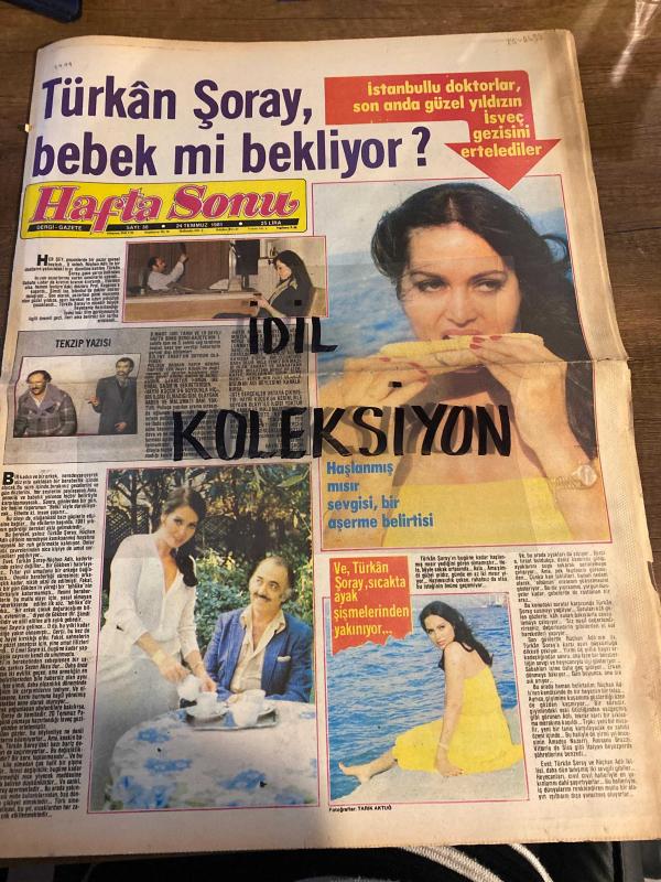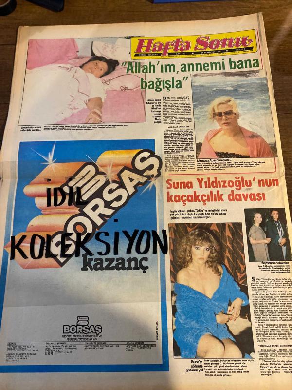 HAFTA SONU GAZETESİ DOĞUM GÜNÜ GAZETESİ (TURKİSH NEWSPAPER) - 24 TEMMUZ 1981 - Yıl:5 Sayı:30 -Türkân Şoray-Suna Yıldızoğlu-Müjde Ar-Mehmet Ali Erbil-Nazan Şoray-Ali Kocatepe-Murat Soydan-Hülya Sözer-Erol Evgin-Sevda Karaca-Sezen Aksu-Ajda Pekkan-Belgin Doruk-Selma Güner-Yusuf Sezgin-Seher Şeniz-Zeki Müren-Tank Akan-Bahar Erdeniz-Mehtap Deniz-İlyas Tüfekçi-Behice Aksoy-Selda Aşkın-Namık Gün-Sevgi Mısralı-Şule Ertan-Erol Önder-Mevhibe İnönü-Engin ve Öner inönü-Nazlı Kadirbeyoğlu-Müberra ve Ferit Volkan-Gönül Yazar-Ercüment Işıl-Ferit Volkan-Çetin Erokay-Latife Erokay-Adnan ener-Beyhan Saldıray-Bora Toprak-Safiye Toprak-Erhan Mendi-Mine Başar-Atilla Oymak-Aylin Mesutoğlu-Gün Kurt-Turgut Ulutin-Ayşen Ortaç-Cüneyt Aydınoğlu-Bozkurt Cendez-Erhan Mendi-Mesude Mendi-Asuman Tuğberk-, Tahsin Öztekin tarafından kaleme alınmıştır. Eser Çetin Emeç editörlüğünde hazırlanmıştır. Kitap Hürriyet gazetecilik tarafından yayınlanmıştır. 12 sayfadır. HAFTA SONU GAZETESİ DOĞUM GÜNÜ GAZETESİ (TURKİSH NEWSPAPER) - 24 TEMMUZ 1981 - Yıl:5 Sayı:30 -Türkân Şoray-Suna Yıldızoğlu-Müjde Ar-Mehmet Ali Erbil-Nazan Şoray-Ali Kocatepe-Murat Soydan-Hülya Sözer-Erol Evgin-Sevda Karaca-Sezen Aksu-Ajda Pekkan-Belgin Doruk-Selma Güner-Yusuf Sezgin-Seher Şeniz-Zeki Müren-Tank Akan-Bahar Erdeniz-Mehtap Deniz-İlyas Tüfekçi-Behice Aksoy-Selda Aşkın-Namık Gün-Sevgi Mısralı-Şule Ertan-Erol Önder-Mevhibe İnönü-Engin ve Öner inönü-Nazlı Kadirbeyoğlu-Müberra ve Ferit Volkan-Gönül Yazar-Ercüment Işıl-Ferit Volkan-Çetin Erokay-Latife Erokay-Adnan ener-Beyhan Saldıray-Bora Toprak-Safiye Toprak-Erhan Mendi-Mine Başar-Atilla Oymak-Aylin Mesutoğlu-Gün Kurt-Turgut Ulutin-Ayşen Ortaç-Cüneyt Aydınoğlu-Bozkurt Cendez-Erhan Mendi-Mesude Mendi-Asuman Tuğberk- adlı eser Türkçe dilindedir.