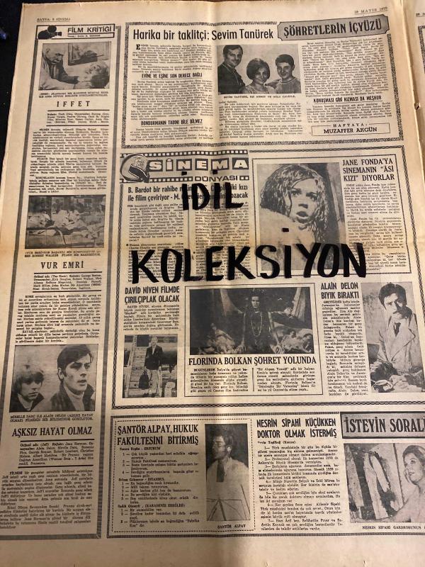 HAFTA SONU GAZETESİ DOĞUM GÜNÜ GAZETESİ (TURKİSH NEWSPAPER) - 28 MAYIS 1970 - Yıl:4 Sayı:175 -Yeni Çıkan Plaklar listesi -Sevim Tanürek – Selda Alkor – Yılmaz Güney – Sevim Tuna – Türkan Şoray – Neriman Köksal – Selma Güneri – Fatma Girik – Ziya Taşkent – Mediha Demirkıran – Ahmet Sezgin – Fatma Karanfil – Yıldızlar prodüktörlere karşı cephe aldı – Rüçhan Çamay – Münir Nurettin – Nevin Kardeş – Ümit Utku – Yalçın Gülhan – Zuhal Aktan – Ayhan Işık – Emel Sayın – Engin Çağlar – Hülya Darcan – Piraye Uzun – Halit Refiğ – Zaliha – Juanito – Serpil Örümcer – Nazan Şoray – Harika bir taklitçi Sevim Tanürek – B. Bardot – M. Laforet – David Niven – Florinda Bolkan – Alain Delon – Şantör Alpay – Nesrin Sipahi – Erkin Koray – Sheila – Sylvie – Ardağan – Muammer Yeşil – Burhan Damcıoğlu – Devletin müzik faaliyetlerini denetlemesi istendi – Vedat Sunay – Ali Ersöz – Ali – Siyah gözlerin – Kuru intihar – Ahlâk buhranı – Kahraman askerler – Solmaz kumaş – Şeytan dürtüyor – Düğmenin de beyni var – Du adlı eser, Kitap > Süreli Yayınlar > Gazeteler > Türkiye > Genel > Günlük kategorisinde İkinci El olarak satıştadır.