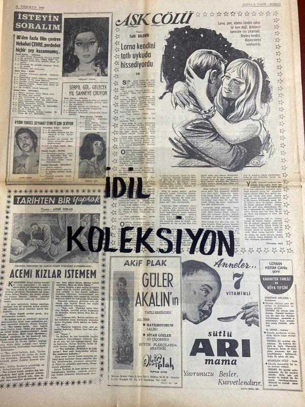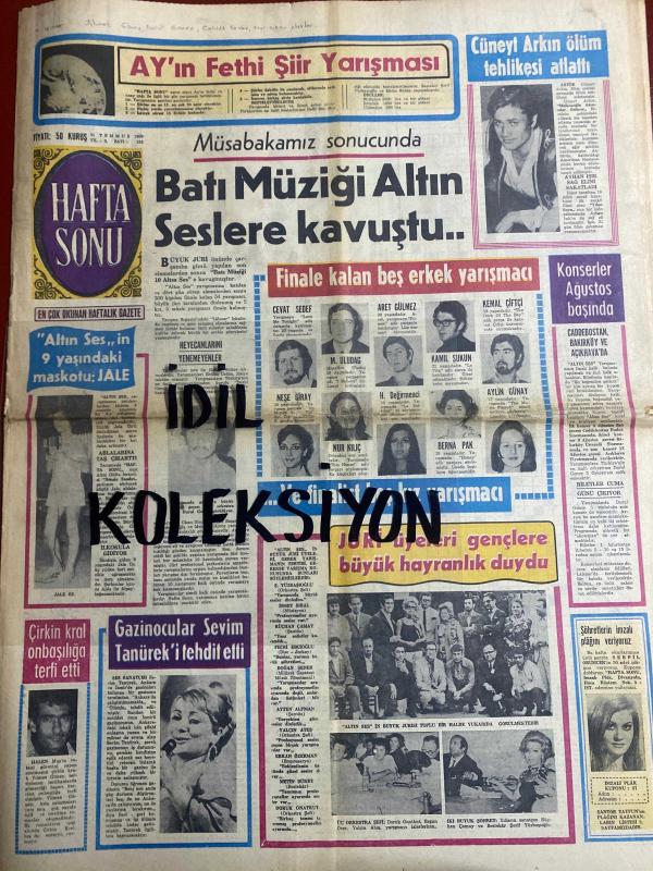 HAFTA SONU GAZETESİ DOĞUM GÜNÜ GAZETESİ (TURKİSH NEWSPAPER) - 31 TEMMUZ 1969 - Yıl:3 Sayı:132 -Yeni Çıkan Plaklar listesi -Cüneyt Arkın–Cevat Sedef–Aret Gülmez–Kemal Çitçi–M. Uludağ–Kamil Sukun–Nese Giray–H. Değirmenci–Nur Kılıç–Berna Pak–Jale–Maksut–Sevim Tanürek–Mehmet Taner–Nalan–Sezen Cumhur–Nilüfer Aydan–Cahide Sonku–Bedri Ayşeli–Osman Tüzen–Güneri Tecer–Sevim Deran–Selma Güner–Ergan Efekan–İbrahim Topaloğlu–Sami Hazinses–Ayşe–Nalan–Ustin Poyraz–Mehmet Göktan–Mehmet Ağaçdelen–Badge–Sandie Shaw–Mireille Mathieu–Necdet Yaşar–Gülşen Ateşöz–Kemal Güner–Necati–Kâmuran Akkor–Niyazi Sayın–Ayten Avcılar–Zeki Müren–Ewa Aulin–Kim Novak–Catherine Deneuve–Jean Belmondo–Mete Han film oyuncuları–Nebahat Çehre–Serpil Gül–Aydın Tansel–Azmi Nihad–Güler Akalın Philips Plak–Sevtap Plak–Sürmeli Plak–Melodi Plak Grubu–Akif Plak–Oya Plak–Harika Plak–Dalbay Plak–Tünç Plak–Bütün Plakçılarda–Akif Plak Sevgi Sun–Oya Plak Huri Sapan–Melodi Plak Arthur Conley–Melodi Plak Grease Milt–Melodi Plak San Francisc adlı eser, Kitap > Süreli Yayınlar > Gazeteler > Türkiye > Genel > Günlük kategorisinde İkinci El olarak satıştadır.