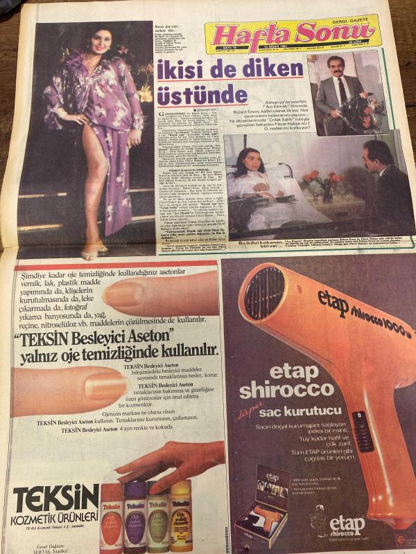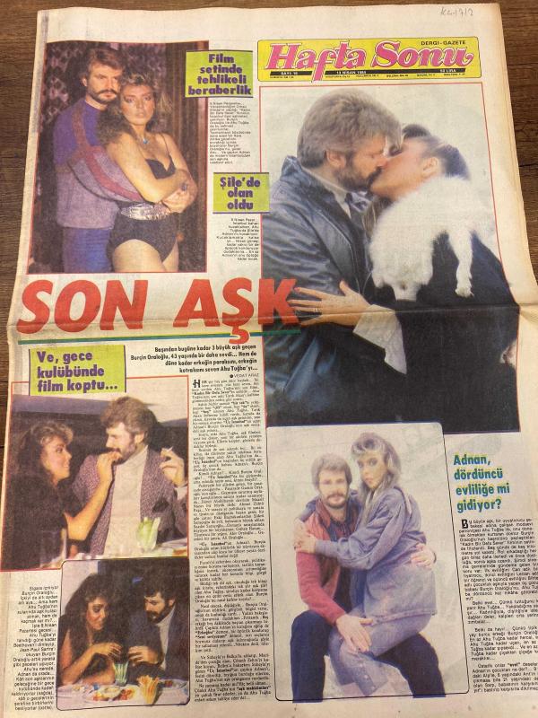 HAFTA SONU GAZETESİ DOĞUM GÜNÜ HEDİYESİ - 13 NİSAN 1984 - TAM TAKIM 12 SAYFADIR - kim hangi sigarayı içiyor-Tarık akan-Yüksel uzel-Ferdi Özbeğen-Samime sanay-Nazan şoray-Selçuk ural-Selahattin cesur-Yasemin kutsi-Naim akan-Engin evin-Adnan Şenses-Ahu Tuğba-Burçin Oraloğlu-Bülent Ersoy-Coşkun Göğen-Ceylan-Sabih Kanadoğlu-Cihan Ünal-Türkan Şoray-Sabiha Küçükgüneş-Ferdi Tayfur-Zerrin Özer-Perihan Savaş-Muazzez Abacı-Yılmaz Hoca-Nazmiye Yener-Türkücü Tülay Zeren-Samime Sanay-Nazım Savaş-Selahattin Cesur-Yasemin Kutlu-Kaplan Kaptan-Haluk Beker Film setinde tehlikeli beraberlik-Şile’de olan oldu-Son aşk-Ve gece kulübünde film koptu-Adnan dördüncü evliliğe mi gidiyor-İkisi de diken üstünde-Bu kız Türkan Şoray’a cici anne diyor-Cihan Ünal hayırlı baba-Ferdi Tayfur’u Londra yaktı-Aile meclisi Zerrin’i yargılıyor ya o ya biz-Perihan Savaş’ın akıl hocası-MDP milletvekili kapdı share Muazzez Abacı Horoz’u yedi-Altınmeşe Şerif Tatlıses’in yolunda-Zehirlerini seçtiler-Mintax yaz kazan Karikatür: Gül adlı eser, Kitap > Süreli Yayınlar > Gazeteler > Türkiye > Genel > Günlük kategorisinde İkinci El olarak satıştadır.