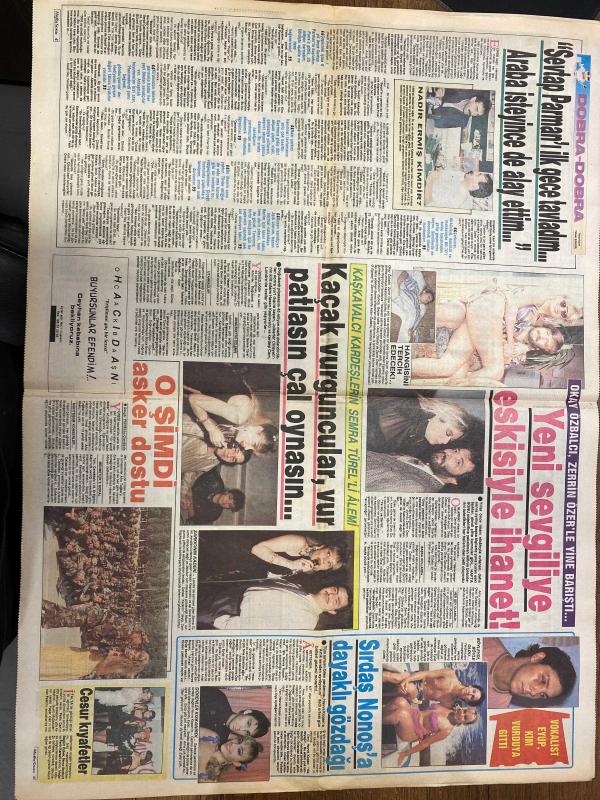 HAFTA SONU GAZETESİ DOĞUM GÜNÜ HEDİYESİ - 27 EYLÜL 1991 - TAM TAKIM 8 SAYFADIR -Hülya Avşar-Dursun Kamadağ-Levent Kırca-Mehmet Kirca-Sevim Kirca-Romen Dilberler-Sevrap Parman-Nadir Remiş-Semra Türel-Zerrin Özer-Vonülsevi Evcü-Haydar Urfalı-Muazzez Abacı-Ferdi Tayfur-İbrahim Tatlıses-Ander Barlay-Necdet Aksoy Hülya’nın yeni erkeği-Avşar kızı’na tövbe bozduran aşk-Her yerde yalnız-Bir kliplik aşk-Haber yorum fısıltı-Seksi dönüş-Son sevgilisi petrolcü-Maraton başladı-Patroniçenin keyfi-İthal sevgili-Repertuarı yanında-Fasıl zamanı-Nezahat Bayram’ın kızı ortaya çıktı-İyice alıştı-Turne yorgunu-Yaz uykusu bitti-Levent Kırca’yı çıldırtan komedi-Tabutu üvey annesi getirdi-Lezbiyen dönme-Nereye baksan ithal et pazarı-Sevrap Parman’ı gece yarısı Arabalısıyınca de alay ettim-Kaçak vurucular vursun oynasın-O şimdi asker dostu-Sırdaş Nonoş’a dayaklı gözdağı-Seçim masraflarına Almanya turnesi-Bağımsız aday İbo yollara düştü-Çılgın şarkıcı-Paranın gözü kör olsun-İbo’nun görkemli Urfa mitingi-Astrofl adlı eser, Kitap > Süreli Yayınlar > Gazeteler > Türkiye > Genel > Günlük kategorisinde İkinci El olarak satıştadır.