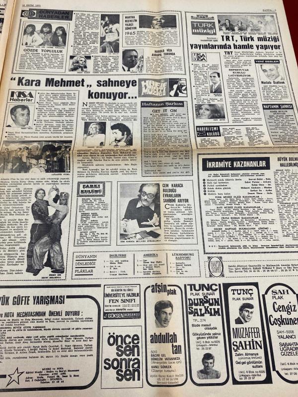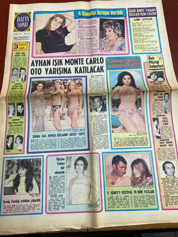 HAFTA SONU GAZETESİ DOĞUM GÜNÜ HEDİYESİ ( Turkish Newspaper ) - 10 EKİM 1971 -TAM TAKIM 6 SAYFADIR -Nilüfer Koçyiğit -Altan Karındaş -Ayhan Işık -Semra Sar -Nalan Yırtık -Hülya Darcan -Rüçhan Çamay -Sevda Ferdag -Yılmaz Güney -Fatyo -Suna Keskin -Sevim Tuna -Zeynep Tedü -Pakize Suda -Turgut Akyüz -Hayri Pekşen -Selma Ersöz -Salim Dündar -Ümit Yaşar Oğuzcan -Cem Karaca -Tony Esmeralda -Yves Montand -Viviya Esensky -Boris Bolan -B.B. (Brigitte Bardot) -Carol Baker -Catherine Spaak -Jean Tringali -Raquel Welch -Demir Karahan -Erol Evgin -Orhan Atasoy -Oksan -Nuran Dede -Erol Yalçın -Hüseyin Bayburt -Nurten Baloğlu -Eser Tengüler -Ümit Erdinç -Suat Uygun -Selda Bağcan -Doğan Cankırılı -Martha Reeves -Harold Vick -Cem Karaca -Nuran Aksu -Mustafa Uzunköprü -Fikret Kızılok -Nevin Nuray -Gülsen Kamu -Altan Poyraz -Serpil Örümcer -Gönül Yüksel -Erol Taş -Erol Tümen -Erdo Vatan -Zeki Müren -Azmi Nihad - Nilüfer Koçyiğit başta 4 sanatçı icraya verildi -Ayhan Işık Monte Carlo oto yarışına katılac, Ali Yılmaz tarafından kaleme alınmıştır. HAFTA SONU GAZETESİ DOĞUM GÜNÜ HEDİYESİ ( Turkish Newspaper ) - 10 EKİM 1971 -TAM TAKIM 6 SAYFADIR -Nilüfer Koçyiğit -Altan Karındaş -Ayhan Işık -Semra Sar -Nalan Yırtık -Hülya Darcan -Rüçhan Çamay -Sevda Ferdag -Yılmaz Güney -Fatyo -Suna Keskin -Sevim Tuna -Zeynep Tedü -Pakize Suda -Turgut Akyüz -Hayri Pekşen -Selma Ersöz -Salim Dündar -Ümit Yaşar Oğuzcan -Cem Karaca -Tony Esmeralda -Yves Montand -Viviya Esensky -Boris Bolan -B.B. (Brigitte Bardot) -Carol Baker -Catherine Spaak -Jean Tringali -Raquel Welch -Demir Karahan -Erol Evgin -Orhan Atasoy -Oksan -Nuran Dede -Erol Yalçın -Hüseyin Bayburt -Nurten Baloğlu -Eser Tengüler -Ümit Erdinç -Suat Uygun -Selda Bağcan -Doğan Cankırılı -Martha Reeves -Harold Vick -Cem Karaca -Nuran Aksu -Mustafa Uzunköprü -Fikret Kızılok -Nevin Nuray -Gülsen Kamu -Altan Poyraz -Serpil Örümcer -Gönül Yüksel -Erol Taş -Erol Tümen -Erdo Vatan -Zeki Müren -Azmi Nihad - Nilüfer Koçyiğit başta 4 sanatçı icraya verildi -Ayhan Işık Monte Carlo oto yarışına katılac adlı eser Türkçe dilindedir.