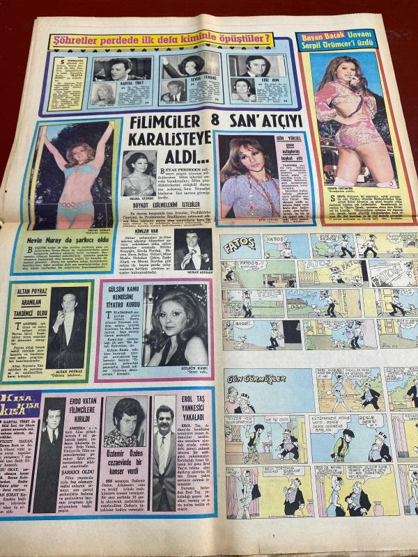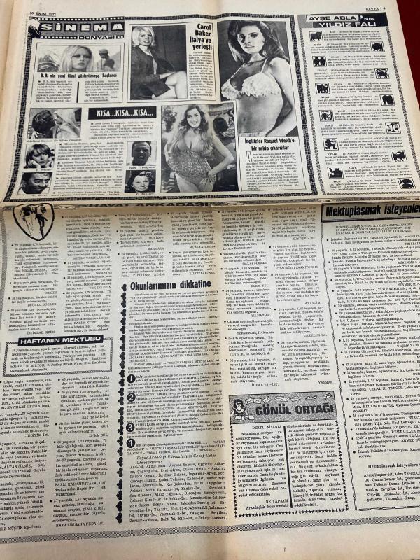 HAFTA SONU GAZETESİ DOĞUM GÜNÜ HEDİYESİ ( Turkish Newspaper ) - 10 EKİM 1971 -TAM TAKIM 6 SAYFADIR -Nilüfer Koçyiğit -Altan Karındaş -Ayhan Işık -Semra Sar -Nalan Yırtık -Hülya Darcan -Rüçhan Çamay -Sevda Ferdag -Yılmaz Güney -Fatyo -Suna Keskin -Sevim Tuna -Zeynep Tedü -Pakize Suda -Turgut Akyüz -Hayri Pekşen -Selma Ersöz -Salim Dündar -Ümit Yaşar Oğuzcan -Cem Karaca -Tony Esmeralda -Yves Montand -Viviya Esensky -Boris Bolan -B.B. (Brigitte Bardot) -Carol Baker -Catherine Spaak -Jean Tringali -Raquel Welch -Demir Karahan -Erol Evgin -Orhan Atasoy -Oksan -Nuran Dede -Erol Yalçın -Hüseyin Bayburt -Nurten Baloğlu -Eser Tengüler -Ümit Erdinç -Suat Uygun -Selda Bağcan -Doğan Cankırılı -Martha Reeves -Harold Vick -Cem Karaca -Nuran Aksu -Mustafa Uzunköprü -Fikret Kızılok -Nevin Nuray -Gülsen Kamu -Altan Poyraz -Serpil Örümcer -Gönül Yüksel -Erol Taş -Erol Tümen -Erdo Vatan -Zeki Müren -Azmi Nihad - Nilüfer Koçyiğit başta 4 sanatçı icraya verildi -Ayhan Işık Monte Carlo oto yarışına katılac adlı eser, Kitap > Süreli Yayınlar > Gazeteler > Türkiye > Genel > Günlük kategorisinde İkinci El olarak satıştadır.