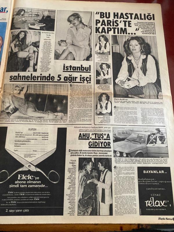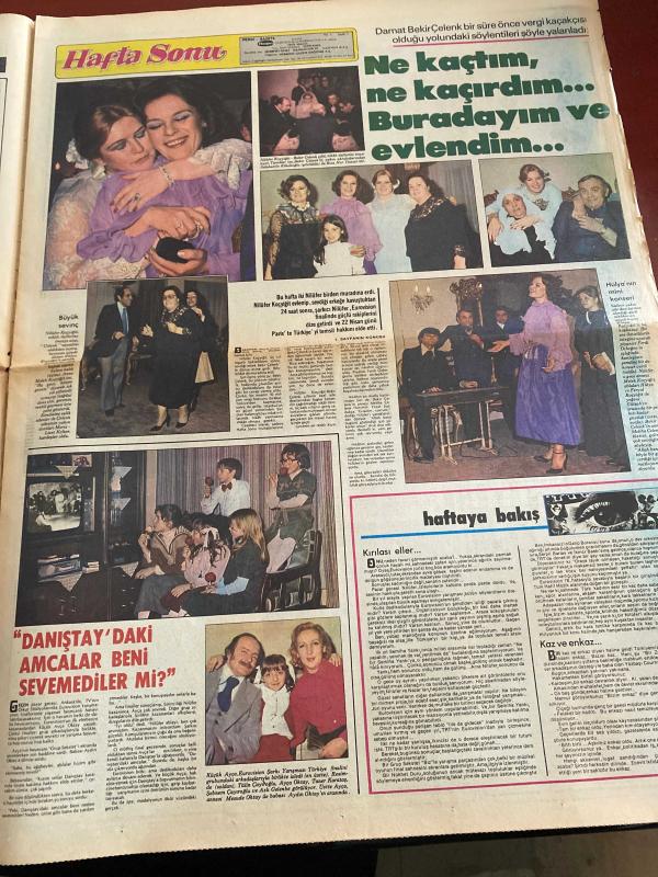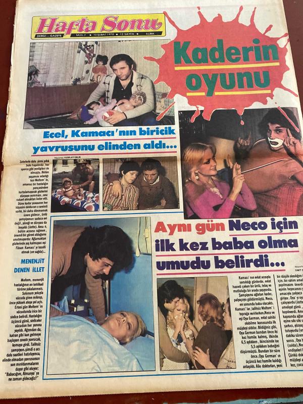 HAFTA SONU GAZETESİ DOĞUM GÜNÜ HEDİYESİ ( Turkish Newspaper ) - 10 ŞUBAT 1978 -TAM TAKIM 12 SAYFADIR - NİLÜFER KOÇYİĞİT VE BEKİR ÇELENK DÜĞÜNÜ-Tamer Yiğit-Makbule Çelenk-Neco-Oya German-Ayla Algan-Tahsin Albayrak-Aysın Pala-Adnan Menderes-Refik Erduran-Ahu Tuğsuz-Nur Onat-Ayla Gürsoy-Tarık Aktuğ-Tatyana Yıldız-Gina Lollobrigida-Ali Kocatepe-Sevim Emre-Hülya Koçyiğit-Füruzan-Kamil Masaracı-Farah Diba-Karl Konstantin-Anne Marie-Gülşen Bubikoğlu-Bülent Kınay-Doktor Özdemir-Nilüfer muradına erdi-Güzel gelinin hazırlığını güzel abla yaptı-Kaderin oyunu-Ecel Kamacı’nın biricik yavrusunu elinden aldı-Aynı gün Neco için ilk kez baba olma umudu belirdi-Menengit denilen illet-Bu hastalığı Paris’te kaptım-İstanbul sahnelerinde 5 ağır işçi-Ahu TUS’a gidiyor-Saunada hanımlar birbirini ovar-Ne kaçtım ne kaçırdım buradayım ve evlendim-Danıştay’daki amcalar beni sevemediler mi-Kahkaha bilmecesi-Gina artık gizlenmiyor-Sansür’ün kalkmasına evet başıbozukluğa hayır-Bursa’da hamam sefası-Barıştılar-Tatlı, Ali Yılmaz tarafından kaleme alınmıştır. HAFTA SONU GAZETESİ DOĞUM GÜNÜ HEDİYESİ ( Turkish Newspaper ) - 10 ŞUBAT 1978 -TAM TAKIM 12 SAYFADIR - NİLÜFER KOÇYİĞİT VE BEKİR ÇELENK DÜĞÜNÜ-Tamer Yiğit-Makbule Çelenk-Neco-Oya German-Ayla Algan-Tahsin Albayrak-Aysın Pala-Adnan Menderes-Refik Erduran-Ahu Tuğsuz-Nur Onat-Ayla Gürsoy-Tarık Aktuğ-Tatyana Yıldız-Gina Lollobrigida-Ali Kocatepe-Sevim Emre-Hülya Koçyiğit-Füruzan-Kamil Masaracı-Farah Diba-Karl Konstantin-Anne Marie-Gülşen Bubikoğlu-Bülent Kınay-Doktor Özdemir-Nilüfer muradına erdi-Güzel gelinin hazırlığını güzel abla yaptı-Kaderin oyunu-Ecel Kamacı’nın biricik yavrusunu elinden aldı-Aynı gün Neco için ilk kez baba olma umudu belirdi-Menengit denilen illet-Bu hastalığı Paris’te kaptım-İstanbul sahnelerinde 5 ağır işçi-Ahu TUS’a gidiyor-Saunada hanımlar birbirini ovar-Ne kaçtım ne kaçırdım buradayım ve evlendim-Danıştay’daki amcalar beni sevemediler mi-Kahkaha bilmecesi-Gina artık gizlenmiyor-Sansür’ün kalkmasına evet başıbozukluğa hayır-Bursa’da hamam sefası-Barıştılar-Tatlı adlı eser Türkçe dilindedir.