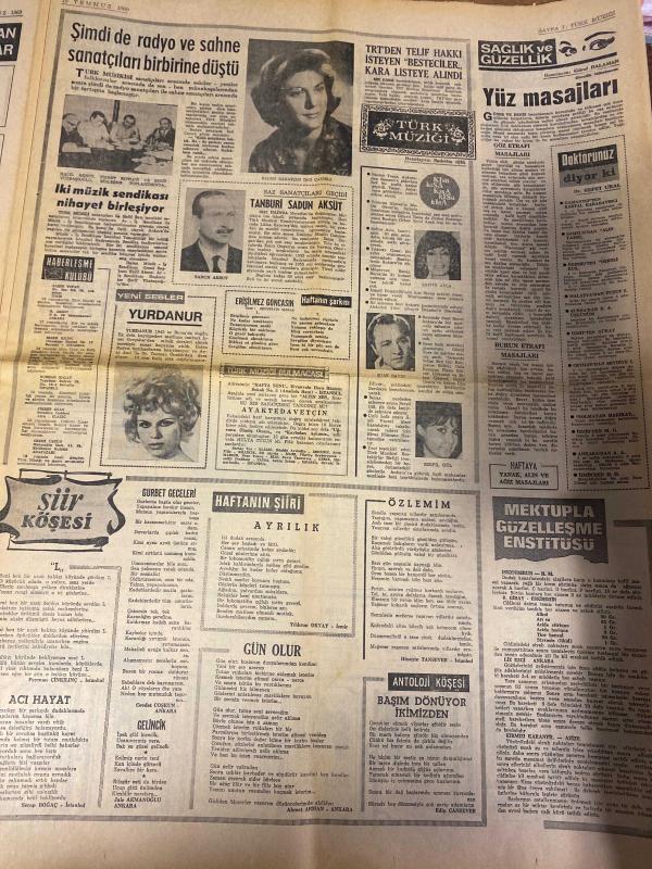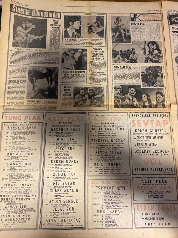 HAFTA SONU GAZETESİ DOĞUM GÜNÜ HEDİYESİ ( Turkish Newspaper ) - 17 TEMMUZ 1969 -TAM TAKIM 10 SAYFADIR - Yeni Çıkan Plaklar Listesi - Orhan Şener-Tanju Gürsu-Türkan Şoray-Sevim Çağlayan-Feridun Çölgeçen-Hülya Koçyiğit-Engin Çağlar-Zeki Müren-Nebahat Çehre-Demir-Ayşe Pekin-Yusuf Nalkesen-Fatma Girik-Beniye Aksoy-Tülin Elgin-Yaşar Özel-Oktay Tem-Sevinç Pekin-Ayhan Işık-Ferda Ferdağ-Avni Anıl-Sadi Hoşses-Muzaffer Sökmen-Saad Hoşses-Nil Sayar-Sevgi Sun-Gülen Akalın-Sevtap Yurdunur-Ruhan Deniz-Tayfun-Kerem Güney-Ediz Onay-Saadet Sun-Aris San-Veronika-Buziki Erol-Sadun Aksüt-Yurdanuş-Erişleş Goncaşin-Safiye Ayla-Şengülen-Besim Hoşses-Nevzat Yalçın-Mualla Mukadder-Gönül Seval-Saime Gül-Melek Göksel-Suat Aydın-Müjdat Şükrü-Şükrü Yalman-Cavit Endoğdu-Fikri Bengi-Şükriye Anday-Müslim Çelik-Aliye Kalfa-Ahmet Ayhan-Sabahat Arslan-Fahri Aslan-Cahit Ençoldu-Ayşe Dürer-Nejat Akın-Tayfur Yudagm-Süheyl Karalı-Orhan Çelik-Hüseyin Arslan-Türkan Demirel-Hamide Ataman-Orhan Çelik-Hüseyin Arslan-Güner Kalfa adlı eser, Kitap > Süreli Yayınlar > Gazeteler > Türkiye > Genel > Günlük kategorisinde İkinci El olarak satıştadır.