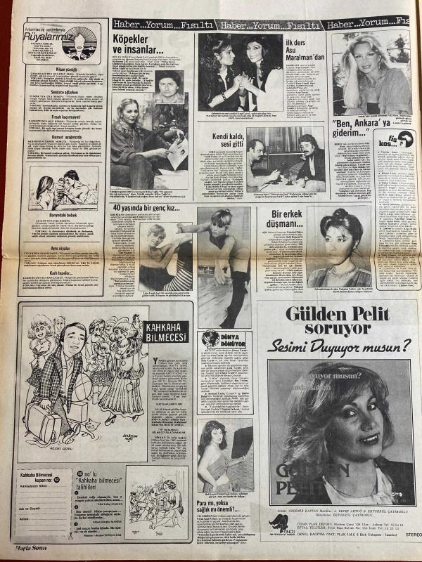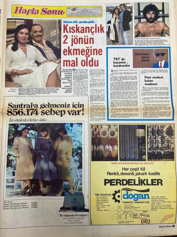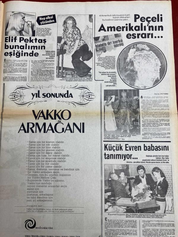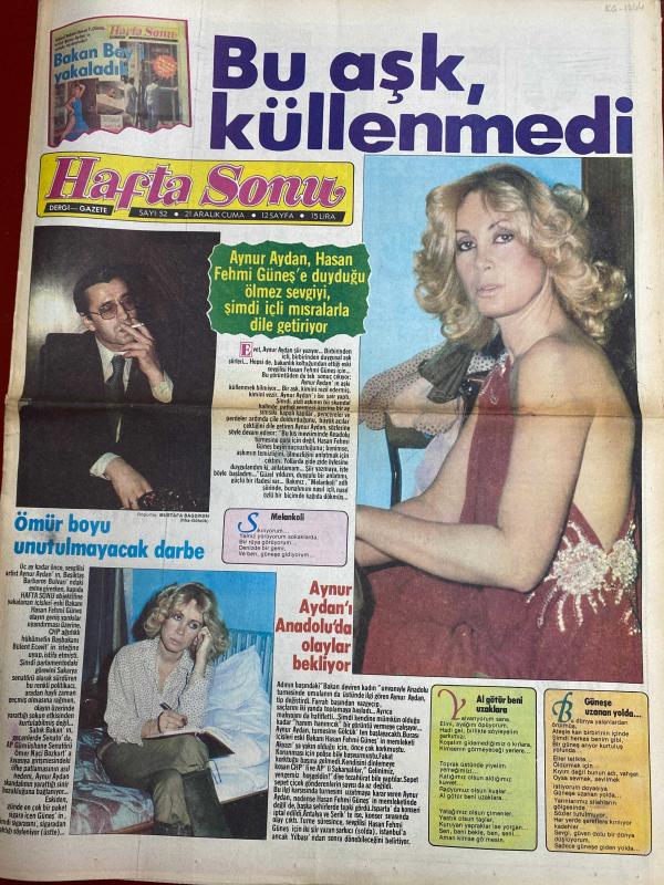 HAFTA SONU GAZETESİ DOĞUM GÜNÜ HEDİYESİ ( Turkish Newspaper ) - 21 ARALIK CUMA - TAM TAKIM 12 SAYFADIR - Aynur Aydan-Hasan Fehmi Güneş-Müjde Ar-Gönül Yazar-Ünal Kutral-Tarık Aktuğ-Yüksel Uzel-Güzide Kasacı-Sezen Aksu-Sibel Egemen-Perihan Savaş-Rüçhan Adlı-Türkan Şoray-Cüneyt Arkın-Hakan Balamir-Bu aşk küllenmedi-Ömür boyu unutulmayacak darbe-Aynur Aydan Anadolu’da olaylar bekliyor-Müjde Ar koca arıyor-Varan 1 Heykel gibi iki aday-Varan 2 Bohem koca-Varan 3 Ve bir bürokrat-İşte adam olacak çocuk-Gönül Yazar İsviçre’de şifa arıyor-Benli türkücü evli çıktı-Yüksel Uzel hem ağlıyor hem gidiyor-Güzide Kasacı dert getirdi-Boşanmanın bedeli 5 milyon-Başkent’te 2 yalnız kadın-Kıskançlık 2 jönün ekmeğine mal oldu, EROL SİMAVİ tarafından kaleme alınmıştır. Eser ÇETİN EMEÇ editörlüğünde hazırlanmıştır. Kitap HÜRGÜN GAZETECİLİK VE MATBAACILIK A.Ş. tarafından yayınlanmıştır. 12 sayfadır. HAFTA SONU GAZETESİ DOĞUM GÜNÜ HEDİYESİ ( Turkish Newspaper ) - 21 ARALIK CUMA - TAM TAKIM 12 SAYFADIR - Aynur Aydan-Hasan Fehmi Güneş-Müjde Ar-Gönül Yazar-Ünal Kutral-Tarık Aktuğ-Yüksel Uzel-Güzide Kasacı-Sezen Aksu-Sibel Egemen-Perihan Savaş-Rüçhan Adlı-Türkan Şoray-Cüneyt Arkın-Hakan Balamir-Bu aşk küllenmedi-Ömür boyu unutulmayacak darbe-Aynur Aydan Anadolu’da olaylar bekliyor-Müjde Ar koca arıyor-Varan 1 Heykel gibi iki aday-Varan 2 Bohem koca-Varan 3 Ve bir bürokrat-İşte adam olacak çocuk-Gönül Yazar İsviçre’de şifa arıyor-Benli türkücü evli çıktı-Yüksel Uzel hem ağlıyor hem gidiyor-Güzide Kasacı dert getirdi-Boşanmanın bedeli 5 milyon-Başkent’te 2 yalnız kadın-Kıskançlık 2 jönün ekmeğine mal oldu adlı eser Türkçe dilindedir.