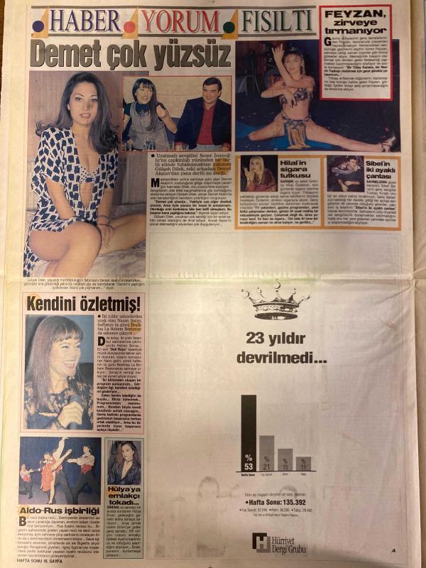 HAFTA SONU GAZETESİ DOĞUM GÜNÜ HEDİYESİ ( Turkish Newspaper ) - 7 ARALIK 1994 - TAM TAKIM 20 SAYFADIR -İbrahim Tatlıses-Canan Yaka-Nisan-Nilüfer Bayri-Mahsun Kırmızıgül-Yusuf Ahmed Kucak-Naşide Göktürk-Hülya Avşar-Deniz Türkali-Duygu Asena-Hale Soygazi-Samime Sanay-Elif İnci Onat-Oya Aydoğan-Rahmi Kocaoğlu-Rıfat Özal-Nahit Menekşe-Mehmet Ağar-Mahir Suğur-Cemil Çiçek-Demet Akalın-Sezer İnanoğlu-Feyzan Yalçınkaya-Hilal Cebeci-Sibel Can-Nalan Sam-Kenan Doğulu-Hülya Koçyiğit-Hale Soygazi-Yavuz Özkan-Serdar Ortaç-Kıraç-Hakan Şükür-Cansel Yurtsever-Nil Burak-Burhan Çaçan-Karı Koca Dayanışması-İbrahim Tatlıses-Gülden Karaböcek-Ayşe Mine-Sezen Aksu-Burcu Güneş-Kelly Lebrock-Steven Seagal-Cheryl Shuman-Tom Jones-Naomi Campbell-Michael Glaser-Elisabeth Glaser-Onella Muti-Arzu Ece adlı eser, Kitap > Süreli Yayınlar > Gazeteler > Türkiye > Genel > Günlük kategorisinde İkinci El olarak satıştadır.