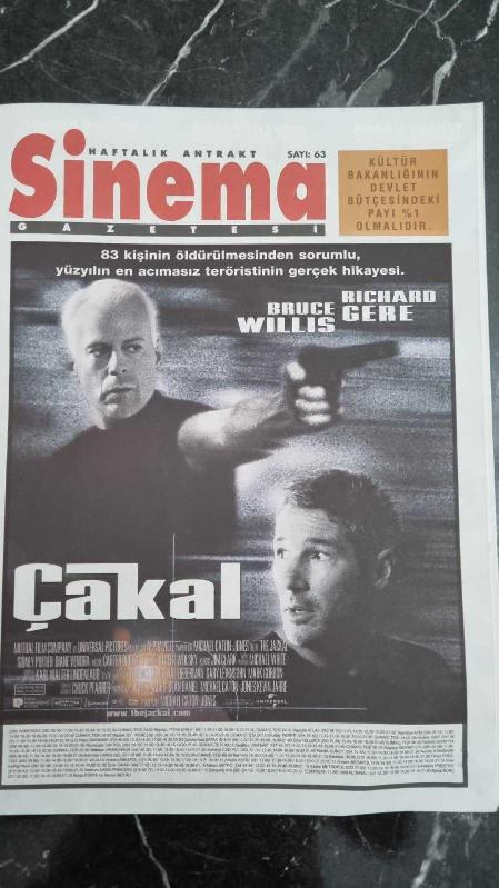 HAFTALIK ANTRAKT SİNEMA GAZETESİ -- 16 -- 22 OCAK 1998 -- ÇAKAL ; BRUCE WILLIS , RICHARD GERE , SİDNEY POİTİER , DİANE VENORA , MATHİLDA MAY -- DOBERMANN ; TCHEKY KARYO , VINCENT CASSEL , MONICA BELLUCCI, PATRİCK ROCCA -- JENERİK - NAJAT ÇELİK , PÜF NOKTASI -- ALİCİA SİLVERSTONE -- CAMERON DİAZ -- ROBERT DE NİRO -- EŞKİYA'NIN AVRUPA TURU DEVAM EDİYOR -- BAK ŞU ŞARKI SÖYLEYENE , DON JOHNSON -- GÜÇLÜLER BÖLGESİ ; SYLVESTER STALLONE, HARVEY KEITEL , RAY LIOTTA , ROBERT DE NİRO -- ÇÖKERTME ; TUNCEL KURTİZ , ŞEMSİ İNKAYA , TUNCER NECMİOĞLU , KUZEY VARGIN VE NİLÜFER AYDAN -- YURTTAŞ KANE ; ORSON WELLES , JOSEPH COTTEN , DOROTHY COMİNGORE , EVERETT SLOANE , RAY COLLİNS , PAUL STEWART -- ANTRAKT ; CÜNEYT İNGİZ , ORMAN KAÇKINI .. adlı eser Türkçe dilindedir.