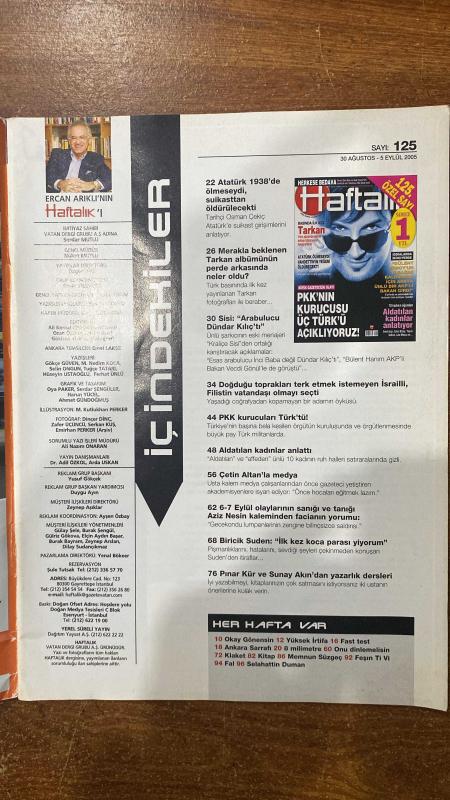 HAFTALIK HABER DERGİSİ -30 AĞUSTOS - 5 EYLÜL 2005 SAYI: 125 İRFAN SAYAR - TARKAN - ATATÜRK - VAHDETTİN - BÜLENT ERSOY - VECDİ GÖNÜL - ERCAN ARIKLI - SERDAR MUTLU - NOKAT MITTLE - ALİ KEMAL - GÖKHAN - EMEL LAKSE - GÖKÇE GÜVEN - M. NEDİM KOCA - SELİN ONGUN - TUĞÇE TATARI - HÜSEYİN USTAOĞLU - FERHAT ÜNLÜ - OYA PAKER - SERDAR ŞENGÜLER - HARUN YÜCEL - AHMET GÜNDOĞMUŞ - M. KUTLUKHAN PERKER - DİNÇER DİNÇ - ZAFER ÜÇÜNCÜ - SERKAN KUŞ - EMİRHAN PERKER - ALİ NAZIM ONARAN - ADİL ÖZKOL - ARDA USKAN - YUSUF GÖKÇEK - DUYGU AYIN - ZEYNEP AŞIKLAR - AYŞEN ÖZBAY - GÜLAY ŞELE - BURAK ŞENGÜL - GÜLRİZ GÖKOVA - ELÇİN AYDIN BAŞAR - BURAK BAYRAM - ZEYNEP ARSLAN - DİLAY SUDANÇIKMAZ - YENAL BÖKEER - ŞULE TUTSAK - OSMAN ÇEKİÇ - DÜNDAR KILIÇ - ÇETİN ALTAN - AZİZ NESİN - BİRİCİK SUDEN - PINAR KÜR - SUNAY AKIN - OKAY GÖNENSİN - SELAHATTİN DUMAN - ÖZGÜR YİCİ - RAHİBE TERESA - W. BUSH HERKESE BEDAVA - ÖZEL SAYI - HAFTAN - BASINDA İLK KEZ - BÜYÜK GAZETECİLİK OLAYI - İDDİALARDA İKİNCİ PERDE - İÇİNDEKİLER - HA-96 SAYFA, SERDAR MUTLU, ERCAN ARIKLI tarafından kaleme alınmıştır. Kitap ABC TÜRKİYE tarafından yayınlanmıştır. 96 sayfadır. HAFTALIK HABER DERGİSİ -30 AĞUSTOS - 5 EYLÜL 2005 SAYI: 125 İRFAN SAYAR - TARKAN - ATATÜRK - VAHDETTİN - BÜLENT ERSOY - VECDİ GÖNÜL - ERCAN ARIKLI - SERDAR MUTLU - NOKAT MITTLE - ALİ KEMAL - GÖKHAN - EMEL LAKSE - GÖKÇE GÜVEN - M. NEDİM KOCA - SELİN ONGUN - TUĞÇE TATARI - HÜSEYİN USTAOĞLU - FERHAT ÜNLÜ - OYA PAKER - SERDAR ŞENGÜLER - HARUN YÜCEL - AHMET GÜNDOĞMUŞ - M. KUTLUKHAN PERKER - DİNÇER DİNÇ - ZAFER ÜÇÜNCÜ - SERKAN KUŞ - EMİRHAN PERKER - ALİ NAZIM ONARAN - ADİL ÖZKOL - ARDA USKAN - YUSUF GÖKÇEK - DUYGU AYIN - ZEYNEP AŞIKLAR - AYŞEN ÖZBAY - GÜLAY ŞELE - BURAK ŞENGÜL - GÜLRİZ GÖKOVA - ELÇİN AYDIN BAŞAR - BURAK BAYRAM - ZEYNEP ARSLAN - DİLAY SUDANÇIKMAZ - YENAL BÖKEER - ŞULE TUTSAK - OSMAN ÇEKİÇ - DÜNDAR KILIÇ - ÇETİN ALTAN - AZİZ NESİN - BİRİCİK SUDEN - PINAR KÜR - SUNAY AKIN - OKAY GÖNENSİN - SELAHATTİN DUMAN - ÖZGÜR YİCİ - RAHİBE TERESA - W. BUSH HERKESE BEDAVA - ÖZEL SAYI - HAFTAN - BASINDA İLK KEZ - BÜYÜK GAZETECİLİK OLAYI - İDDİALARDA İKİNCİ PERDE - İÇİNDEKİLER - HA-96 SAYFA adlı eser Türkçe dilindedir.