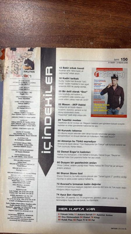 HAFTALIK HABER DERGİSİ - 31 MART – 6 NİSAN 2006 SAYI: 156-Keremcem- SHARON STONE - NECATİ ŞAŞMAZ - RACİ ŞAŞMAZ - GÖKHAN YILMAZ - OZAN ÖZHAN - DESTAN HARMANCI - EMEL LAKŞE - GÖKÇE GÜVEN - M. NEDİM KOCA - SELİN ONGUN - TUĞRUL TUNALIGİL - HÜSEYİN USTAOĞLU - FERHAT ÜNLÜ - OYA PAKER - HARUN YÜCEL - AHMET GÜNDOĞMUŞ - İLKSEN KISACIK - M. KUTLUKHAN PERKER - DİNÇER DİNÇ - ZAFER ÜÇÜNCÜ - SERKAN KUŞ - EMİRHAN PERKER - ALİ NAZIM ONARAN - ADİL ÖZKOL - ARDA USKAN - HAKAN ÖNEN - YENAL BÖKEER - ZEYNEP AŞIKLAR - AYŞEN ÖZBAY - ZEYNEP ARSLAN - DİLAY SUDANÇIKMAZ - BURAK ŞENGÜL - ZEHRA T. DEĞİRMENCİ - MELİH SÜER - GÜLAY YILMAZ - HÜLYA KIZILIRMAK DOKAK - DİLEK ÖZGEN - ŞULE TUTSAK - ATAKAN GÜL - AYŞENUR ARSLAN SOSYETİK İSLAMCILAR - BAKİR ERKEK MODASI - DEMET EVGAR RÖPORTAJI - KADİRİ TARİKATI VE ABD İŞBİRLİĞİ - MASONLAR VE AKP İLİŞKİSİ - TESETTÜR MODASI - KURUSIKI TABANCA GERÇEĞE DÖNÜŞÜYOR - ALMANYA’DA TÜRK KOMEDİ DİZİSİ - DEMET EVGAR’IN KADINLARI - YILMAZ ÇETİNER ANILARI - SHARON STONE “TEMEL -96 SAYFA, SERDAR MUTLU, ERCAN ARIKLI tarafından kaleme alınmıştır. Kitap ABC TÜRKİYE tarafından yayınlanmıştır. 96 sayfadır. HAFTALIK HABER DERGİSİ - 31 MART – 6 NİSAN 2006 SAYI: 156-Keremcem- SHARON STONE - NECATİ ŞAŞMAZ - RACİ ŞAŞMAZ - GÖKHAN YILMAZ - OZAN ÖZHAN - DESTAN HARMANCI - EMEL LAKŞE - GÖKÇE GÜVEN - M. NEDİM KOCA - SELİN ONGUN - TUĞRUL TUNALIGİL - HÜSEYİN USTAOĞLU - FERHAT ÜNLÜ - OYA PAKER - HARUN YÜCEL - AHMET GÜNDOĞMUŞ - İLKSEN KISACIK - M. KUTLUKHAN PERKER - DİNÇER DİNÇ - ZAFER ÜÇÜNCÜ - SERKAN KUŞ - EMİRHAN PERKER - ALİ NAZIM ONARAN - ADİL ÖZKOL - ARDA USKAN - HAKAN ÖNEN - YENAL BÖKEER - ZEYNEP AŞIKLAR - AYŞEN ÖZBAY - ZEYNEP ARSLAN - DİLAY SUDANÇIKMAZ - BURAK ŞENGÜL - ZEHRA T. DEĞİRMENCİ - MELİH SÜER - GÜLAY YILMAZ - HÜLYA KIZILIRMAK DOKAK - DİLEK ÖZGEN - ŞULE TUTSAK - ATAKAN GÜL - AYŞENUR ARSLAN SOSYETİK İSLAMCILAR - BAKİR ERKEK MODASI - DEMET EVGAR RÖPORTAJI - KADİRİ TARİKATI VE ABD İŞBİRLİĞİ - MASONLAR VE AKP İLİŞKİSİ - TESETTÜR MODASI - KURUSIKI TABANCA GERÇEĞE DÖNÜŞÜYOR - ALMANYA’DA TÜRK KOMEDİ DİZİSİ - DEMET EVGAR’IN KADINLARI - YILMAZ ÇETİNER ANILARI - SHARON STONE “TEMEL -96 SAYFA adlı eser Türkçe dilindedir.