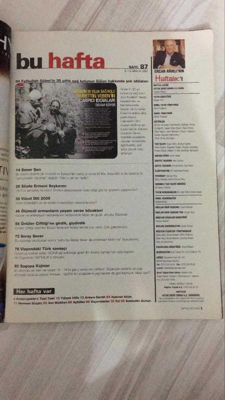 HAFTALIK HABER DERGİSİ - SAYI: 87 - 8-14 ARALIK 2004 - 96 SAYFA - TÜM ZAMANLARIN EN SEKSİ DİZİ KADINLARI EKİ - VÜCUT DİLİ 2005 - FETHULLAH GÜLEN'İN SIRDAŞINDAN İTİRAFLAR - ÜNLÜLER ÇİFTLİĞİ - BÜYÜK İSKENDER KOSTÜMLERİ - SÖZDE ERMENİ SOYKIRIMI HAKKINDA GİZLİ BELGELER - ŞENER ŞEN EŞKIYA SONRASI İKİ PROJEYLE DÖNDÜ - ÖLÜMCÜL ORMANLARIN YAŞAM VEREN BÖCEKLERİ - SERAY SEVER - KALBİN ZAMANI - SAGOPA KAJMER - HERKESE BEDAVA - EFSANELER DOĞRU MU - İSLAM'DA ÜREYİN TARTIŞMASI - EN BÜYÜK 5 AŞK YALANI - WEBCAM ÇIPLAKLARI OKAY GÖNENSİN - AYŞENUR ASLAN - SELAHATTİN DUMAN - FETHULLAH GÜLEN - NURETTİN VEREN - ŞENER ŞEN - SERAY SEVER - ALİ ÖZGENTÜRK - SAGOPA KAJMER - ERCAN ARIKLI - SERDAR MUTLU - NÜKET MUTLU - ÖZGÜR YİCİ - ONUR YILDIRIM - YEŞİM ERGİN - HAKAN TURPCU - KUTLU ESENDEMİR - ALİ KEMAL ERDEM - OZAN ÖZHAN - GÖKHAN YILMAZ - EMEL LAKŞE - GÖKÇE GÜVEN - SELİN ONGUN - TUĞÇE TATARI - HÜSEYİN USTAOĞLU - FERHAT ÜNLÜ - OYA PAKER - SERDAR ŞENGÜLER - HARUN YÜCEL - AHMET GÜNDOĞMUŞ - M. KUTLUKHAN PERKER - DİNÇ adlı eser, Kitap > Süreli Yayınlar > Dergiler > Siyaset kategorisinde İkinci El olarak satıştadır.