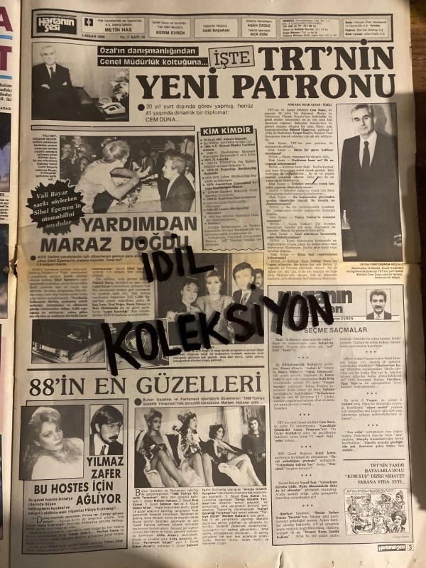 HAFTANIN SESİ GAZETESİ - DOĞUM GÜNÜ HEDİYESİ (TURKİSH - NEWSPAPER) - 1 NİSAN 1988 - SAYI : 14 - TAM TAKIM 12 SAYFADIR -Hülya Avşar-Osman Baysu-Yaşar Kekeva-Hüseyin Emre-Bülent Ersoy-Nilüfer-Coşkun Sabah-Nadir Ermiş-Serpil Çakmaklı-Harika Avcı-Orhan Gencebay-Abdullah Nail Baysu-Bahar Öztan-Sibel Giray-Ümit Besen-Sibel Turnagöl-Kerem Alışık-Anna Aslan-İpek Pınar-Nester Sen-Nurhan Damcıoğlu-Türkan Şoray-Hülya Koçyiğit-Öztürk Serengil-Turgut Özal-Süreyya Duru-Halide Edip-Rutkay Aziz-Cihan Ünal-Hepşen Akar-Ağah Özgüç-Yeşim Gazetepe-Bülent Ersoy-Ersin Demirören-Erdogan Demirören-Tülin Demirören-Özcan Sandıkçıoğlu-Vassilia Mandakis-Süha Özgerimi-Perihan Savaş-Perran Kutman-Nazan Süzer-Lili Garih-Mustafa Süzer-Üzeyir Garih-Semra Özal-Cem Duna-Nükhet Duru-Cahit Bayar-Sibel Egemen-Erol Evgin-Barış Manço-Rıza Silahlıoğlu-Meltem Hakarar-Yılmaz-Ayhan Işık-Selma Güneri-Yusuf Sezgin-Aşkın Tuna-Hüsnü Üstün-Lütfi Güneri-Aysel-Arnold Schwarzenegger-Sylvester Stallone-Cee Berkanth-Mahmut Tuncer-Volkan A adlı eser, Kitap > Süreli Yayınlar > Gazeteler > Türkiye > Genel > Günlük kategorisinde İkinci El olarak satıştadır.