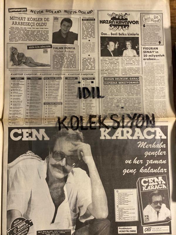 HAFTANIN SESİ GAZETESİ - DOĞUM GÜNÜ HEDİYESİ (TURKİSH - NEWSPAPER) - 18 EYLÜL 1987 - SAYI : 38 - TAM TAKIM 12 SAYFADIR -Bülent Ersoy-Uğur Onur Urhan-Semra Özal-Mehmet Keçeciler-Süleyman Demirel-Sibel Can-Mete Küçükberber-Erhan Can-Nil Ünal-Müjdat Gezen-Gökhan Güney-Gökben-Saziye Ünal-Hasan Bora-Burhan Çaçan-İbrahim Tatlıses-Burhan Özturan-Belkıs Akkale-Rahmi Faruk Tınaz-Canan-Ferdi Tayfur-Dursun Karadağ-Serpil Çakmaklı-Alev Sayın-Mahmut Tuncer-Mine-Müjde Ar-Muazzez Abacı-Onno Tunç-Zerrin Özer-Ajda Pekkan-Mustafa Topaloğlu-Şakir Oktay-Burhan Bayar-Kadir İnanır-Samime Sanay-Anıl-Edip Aktaş-Kemal Özkan-Erdoğan Berker-Hülya Işıl-Duygu Emre-Güler Sabancı-Mehmet Çelik-Sakıp Sabancı-Ahmet Karaevli-Turgut Özal-Mehmet-Ömer-Gökben-Erkan Yolaç-Cem Karaca-Mithat Körler-Vijdan Arıkan-Orhan Gencebay-Müjde Ar-Türkan Şoray-Sibel Can-Perihan Savaş-Oya Aydoğan, METİN HAS tarafından kaleme alınmıştır. Eser Cahit Poyraz editörlüğünde hazırlanmıştır. Kitap Has Gazetecilik yayıncılık tarafından yayınlanmıştır. 12 sayfadır. HAFTANIN SESİ GAZETESİ - DOĞUM GÜNÜ HEDİYESİ (TURKİSH - NEWSPAPER) - 18 EYLÜL 1987 - SAYI : 38 - TAM TAKIM 12 SAYFADIR -Bülent Ersoy-Uğur Onur Urhan-Semra Özal-Mehmet Keçeciler-Süleyman Demirel-Sibel Can-Mete Küçükberber-Erhan Can-Nil Ünal-Müjdat Gezen-Gökhan Güney-Gökben-Saziye Ünal-Hasan Bora-Burhan Çaçan-İbrahim Tatlıses-Burhan Özturan-Belkıs Akkale-Rahmi Faruk Tınaz-Canan-Ferdi Tayfur-Dursun Karadağ-Serpil Çakmaklı-Alev Sayın-Mahmut Tuncer-Mine-Müjde Ar-Muazzez Abacı-Onno Tunç-Zerrin Özer-Ajda Pekkan-Mustafa Topaloğlu-Şakir Oktay-Burhan Bayar-Kadir İnanır-Samime Sanay-Anıl-Edip Aktaş-Kemal Özkan-Erdoğan Berker-Hülya Işıl-Duygu Emre-Güler Sabancı-Mehmet Çelik-Sakıp Sabancı-Ahmet Karaevli-Turgut Özal-Mehmet-Ömer-Gökben-Erkan Yolaç-Cem Karaca-Mithat Körler-Vijdan Arıkan-Orhan Gencebay-Müjde Ar-Türkan Şoray-Sibel Can-Perihan Savaş-Oya Aydoğan adlı eser Türkçe dilindedir.