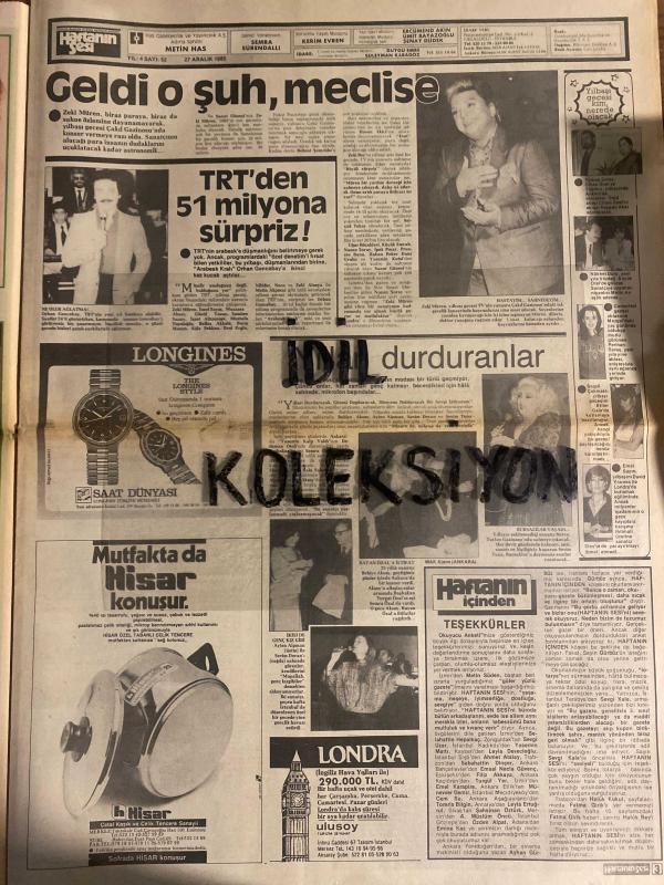 HAFTANIN SESİ GAZETESİ - DOĞUM GÜNÜ HEDİYESİ (TURKİSH - NEWSPAPER) - 27 ARALIK 1985 - SAYI : 52 - TAM TAKIM 12 SAYFADIR -Sakıp Sabancı-Müjde Ar-Mazhar Alanson-Hacı Ömer Sabancı-Türkan Şoray-Atilla Özdemiroğlu-Cihan Ünal-Onno Tunç-Ali Koç-Kadir İnanır-Sevtap Parman-İbrahim Ünsü-Erdoğan Tokatlı-Hülya Darcan-Tanju Korel-Bruno Cramer-Mireille Darc-Erol Günaydın-İhsan Yüce-Sümer Tilmaç-Oya Aydoğan-Kamil Dizdar-Meral Orhonsay-Gönül Yazar-Vural Öger-Muazzez Abacı-Ahu Tuğba-Prenses Banu-Sibel Can-Nükhet Duru-Nesrin Topkapı-Tülay Karaca-Tolga Han-Nadya Peker-Zeki Müren-Orhan Gencebay-Nilüfer-Neco-Zeki Alasya-Metin Akpınar-Akın Akınözü-Sazanne Aksu-İzzet Altınmeşe-Mustafa Topaloğlu-Belkıs Akkale-Barış Manço-Ajda Pekkan-Erol Evgin-Uğur Böcekleri-Küçük Emrah-Nazan Şoray-İpek Pınar-Prenses Banu-Hakan Peker-Yasemin Kutsi-Selçuk Tekay-Behzat Şenyıldız-Hasan Ekinci-Bülent Ersoy-Türkan Şoray-Cihan Ünal-Nükhet Duru-Metin Arı-Perihan Savaş-Serpil Çakmaklı-Emel Sayın-David Younes-Leo Andrade-Serbülent Sul adlı eser, Kitap > Süreli Yayınlar > Gazeteler > Türkiye > Genel > Günlük kategorisinde İkinci El olarak satıştadır.