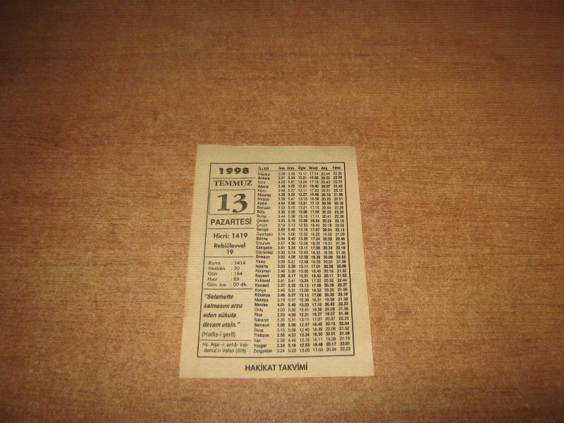 HAKİKAT TAKVİMİ YAPRAĞI 13 TEMMUZ 1998 DE : POŞ / DO