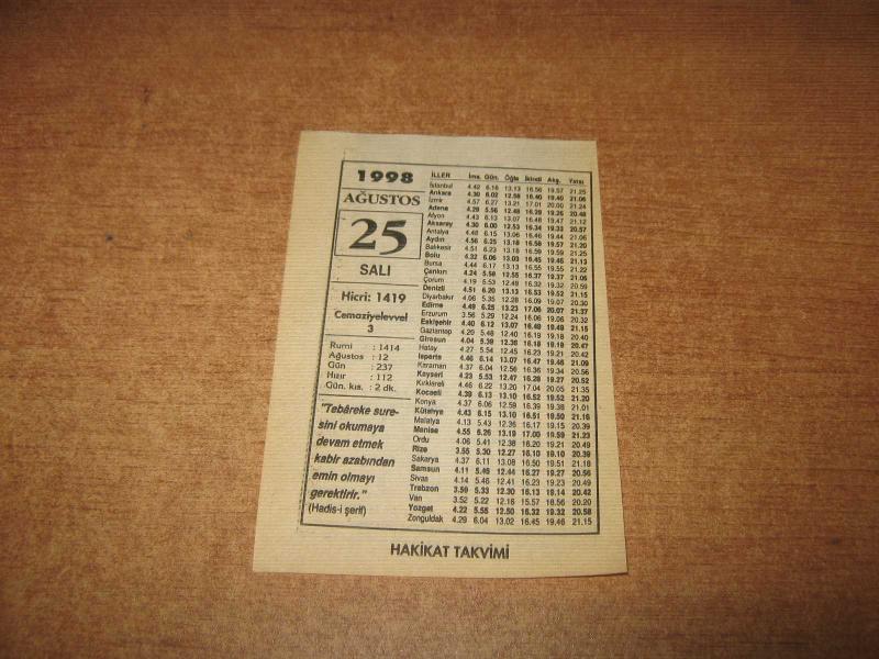 HAKİKAT TAKVİMİ YAPRAĞI 25 AĞUSTOS 1998, en son 1 yıl önce güncellenmiştir.