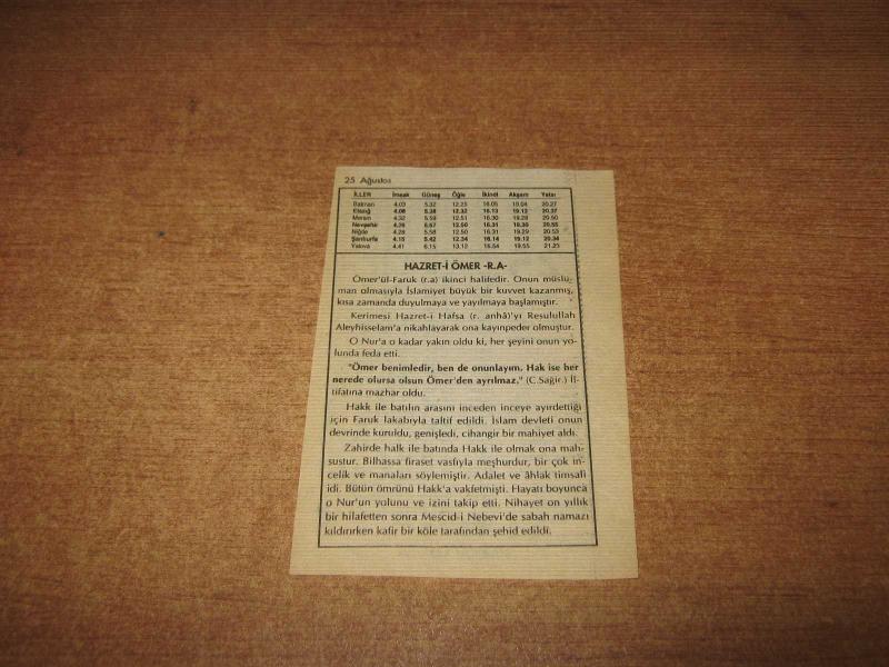 HAKİKAT TAKVİMİ YAPRAĞI 25 AĞUSTOS 1998 DE : POŞ / DO
