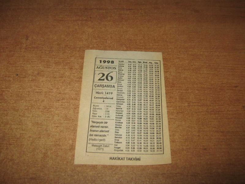 HAKİKAT TAKVİMİ YAPRAĞI 26 AĞUSTOS 1998 DE : POŞ / DO