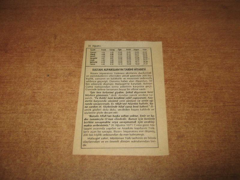 HAKİKAT TAKVİMİ YAPRAĞI 26 AĞUSTOS 1998 başlıklı ürün, Efemera, Müzik, Sinema > Belge ve Evraklar > Takvimler kategorisi altında İkinci El olarak satılmaktadır.