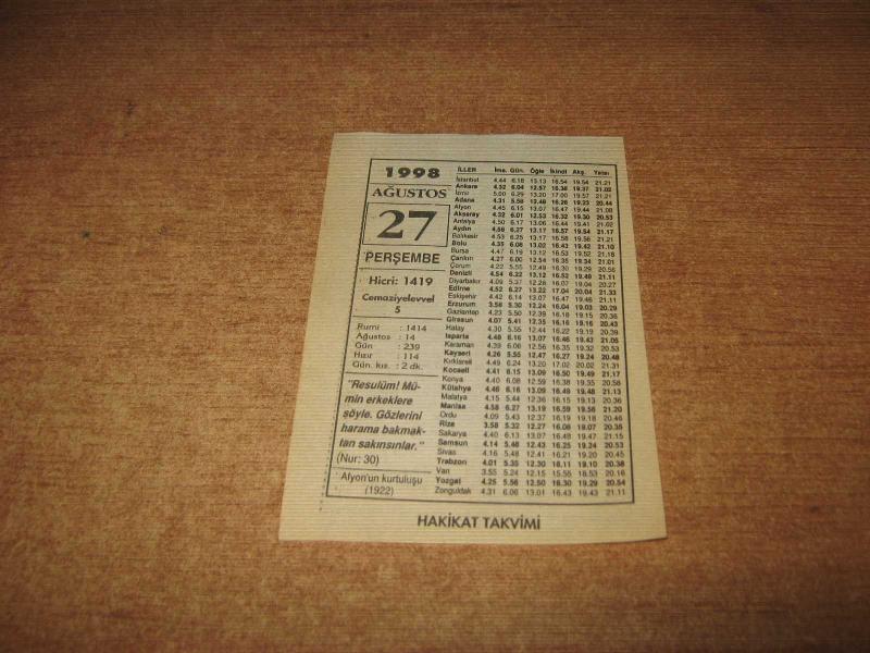 HAKİKAT TAKVİMİ YAPRAĞI 27 AĞUSTOS 1998, en son 1 yıl önce güncellenmiştir.