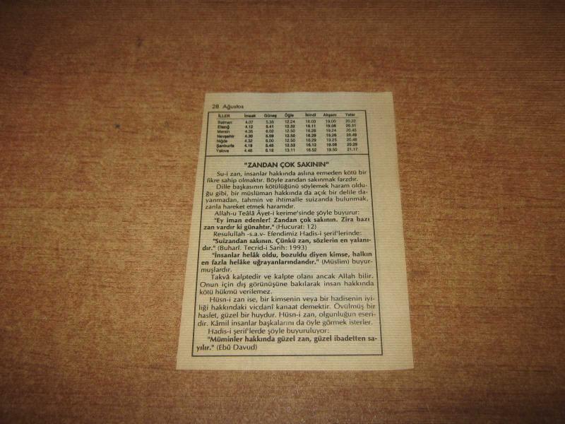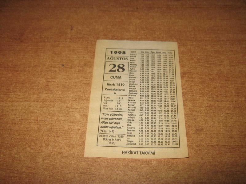 HAKİKAT TAKVİMİ YAPRAĞI 28 AĞUSTOS 1998 DE : POŞ / DO