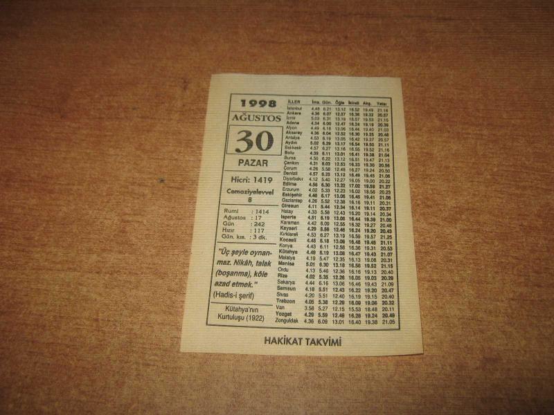 HAKİKAT TAKVİMİ YAPRAĞI 30 AĞUSTOS 1998, en son 1 yıl önce güncellenmiştir.