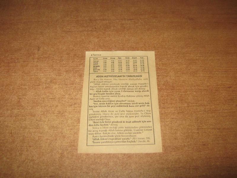 HAKİKAT TAKVİMİ YAPRAĞI 4 TEMMUZ 1998 başlıklı ürün, Efemera, Müzik, Sinema > Belge ve Evraklar > Takvimler kategorisi altında İkinci El olarak satılmaktadır.