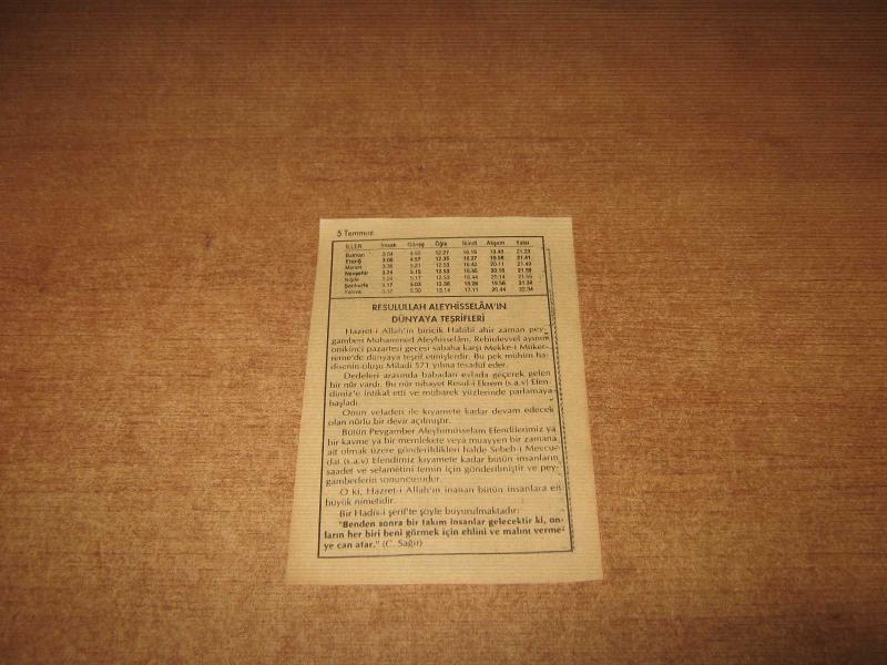 HAKİKAT TAKVİMİ YAPRAĞI 5 TEMMUZ 1998 DE : POŞ / DO