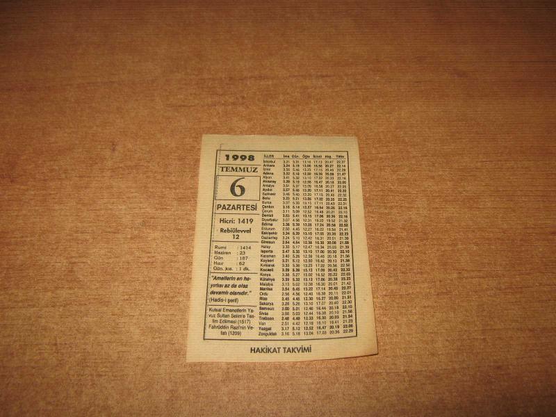 HAKİKAT TAKVİMİ YAPRAĞI 6 TEMMUZ 1998 DE : POŞ / DO