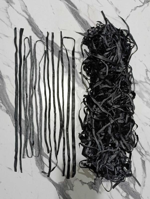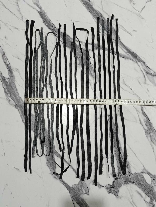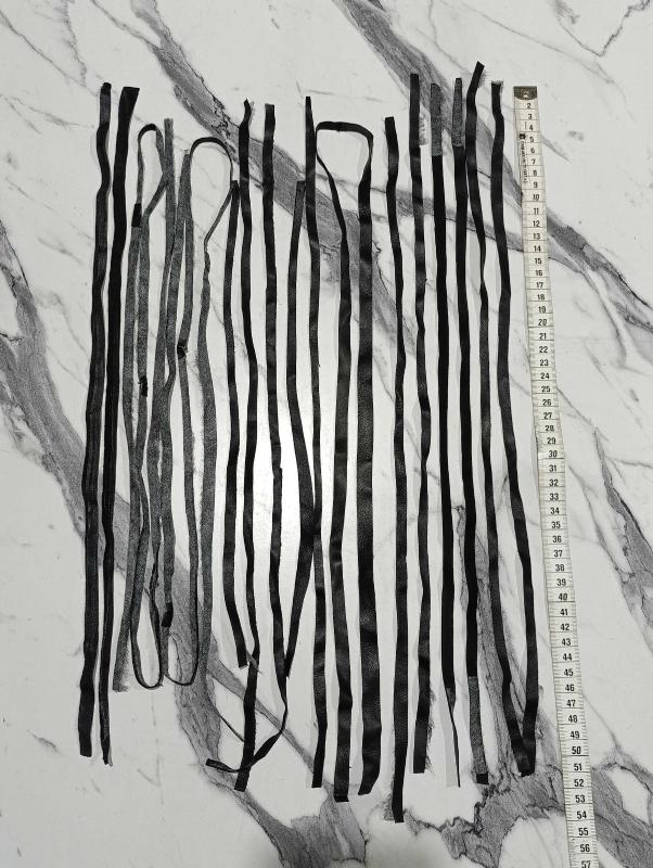 1.Sınıf hakiki kuzu derisi şerit biyeler. Saç örgüsü yapabilirsiniz, çanta, yelek, etek ve kemer püskülleri için kullanabilirsiniz, saç tokası ve bileklik yapabilirsiniz yada anahtarlık ve ayakkabı püskülü olarak kullanabilirsiniz. Yazılı olan fiyat 300 gram için geçerlidir, daha fazla ihtiyacınız olduğu takdirde benimle iletişime geçiniz, ben size temin edebilirim. Bir kısmının tabanında tela yapışıktır, bir kısmı ise telasızdır, genişlikleri ve uzunlukları standart değildir, yaklaşık ölçüleri aşağıda yazılıdır ve örnek olarak fotoğraflarda gösterilmiştir. Not:Şuan için elimde sadece siyah ve bej renk mevcuttur, İlk 5 fotoğraf kendime ait çekimlerdir diğerlerini kullanabileceğiniz alanlar ve hobiler için örnek olarak gösterdim. Renk:Siyah - Kalınlık:0,7.mm Genişlik:5.mm ile 10 mm arası değişmektedir. Uzunluk:30.cm ile 55.cm arası değişmektedir. Sayfamdaki diğer ürünlerimede bakınız.