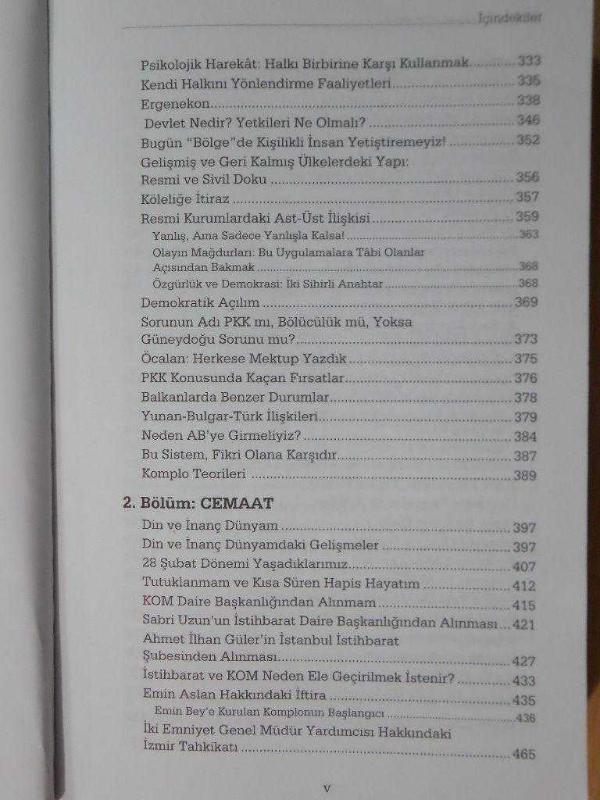 ANGORA YAYINCILIK , 2010 EBAT: 21X14 CM , 597 SAYFA Emniyet Teşkilatının efsanevi ismi, Susurluk sürecinde cesur duruşuyla gerçek bir kanun adamı tavrı gösteren Hanefi Avcı yine doğru bildiklerini söylemeye devam ediyor. Ucunun kime dokunduğuna bakmadan, yalnızca ülkesine karşı vicdani sorumluluğunu yerine getirmek için son dönemde yaşananların iç yüzünü kamuoyuna açıklıyor. Kitap iki bölümden oluşuyor. Devlet başlıklı ilk bölümde, yıllarca devlete hizmet etmiş bir güvenlik görevlisi olarak geçirdiği fikirsel dönüşümü, bu dönüşüme neden olan olayları okurlarla paylaşıyor. Bu fikirsel dönüşümün sonucunda Avcı artık, uzun yıllar mücadele ettiği, sisteme muhalif grupların demokratik ve sağlıklı bir sistemin olmazsa olmazı olduğuna, farklı fikir ve düşüncelerin topluma zarar değil, ancak bir zenginlik katacağına, güvenlik sorununa indirgenen Kürt sorununun ancak demokratik hak ve özgürlükler alanının genişletilerek siyasi yollarla çözümlenebileceğine ve ordunun batılı ülkelerde olduğu gibi siyasetin dışında kalarak güçlü bir ordu olabileceğine inandığını açık yüreklilikle ifade ediyor. Avcı, bu kitabı yazmaktaki önemli amaçlarından birinin, böyle köklü bir değişim yaşamasına neden olan mesleki tecrübelerini aktararak, çok geniş bir kriminal yelpazede çalışmış olmanın verdiği donanımla kendinden sonra geleceklere yol göstermek olduğunu belirtiyor. Cemaat başlıklı ikinci bölümde ise Avcı devletin çeşitli kurumlarına nüfuz etmiş cemaat yapısının son zamanlarda meydana gelen olaylardaki (özel yetkili mahkemelerin sürdürdüğü tahkikatlardan, telefon dinlemelerine, vs.) rolünü ortaya koyuyor. Cemaatin polis, ordu, MİT, jandarma, yargı ve diğer devlet kurumları içerisinde ayrı bir hiyerarşik örgütleme kurarak ve bu teşkilatların sistemlerini bozarak çalışmalarını engellediğinden, üstüne üstlük bu teşkilatların personeli arasında ayrım, güvensizlik ve düşmanlık yaratarak kurumları içerden ve tamir olunmaz biçimde yaraladığından bahsediyor. Bugün özellikle özel yetkili mahkemelerce yürütülen tahkikatların, arka planda cemaatin talimatı ile Emniyet İstihbarat Şubesindeki unsurları ve cemaate bağlı savcılar desteği ve zorlaması ile yürütüldüğüne, yürütülürken hukuksuz işlemlerin yapıldığına dair ciddi emareler olduğunu iddia ediyor. Tüm bu iddialarını, delilleriyle sağlam bir zemin üzerine inşa ediyor. Avcı kitabın başlığında iki metafor kullanıyor; bunların devlet görevlilerinin, belli bir ideoloji etrafında örgütlenmiş grupların ve genel anlamda toplumun zihniyetini tanımlayabilmek için ne kadar isabetli bir biçimde seçilmiş olduğunu kitabı okuyup bitirdiğinizde anlayacaksınız. Görünen değil, perde arkasındaki gerçekleri merak ediyorsanız Emniyet teşkilatının güvenilir ve öncü ismi Hanefi Avcı?nın dürüst ve cesur sesine kulak verin! Hanefi Avcı, meslek hayatına 1976 yılında Mut ilçe Emniyet Komiserliği görevi ile başladı. Daha sonra İstanbul İstihbarat Şube Müdürlüğü, KOM Dairesi Başkanlığı ve Edirne Emniyet Müdürlüğü görevlerinde bulundu. Avcı, halen Eskişehir Emniyet Müdürü olarak göre yapmaktadır. 2006 yılında TASAM?ın Stratejik Vizyon Sahibi Bürokrat Ödülü?nü kazanmıştır. Avcı, Emniyette teknik-elektronik istihbaratın kurucusu olarak bilinir. "