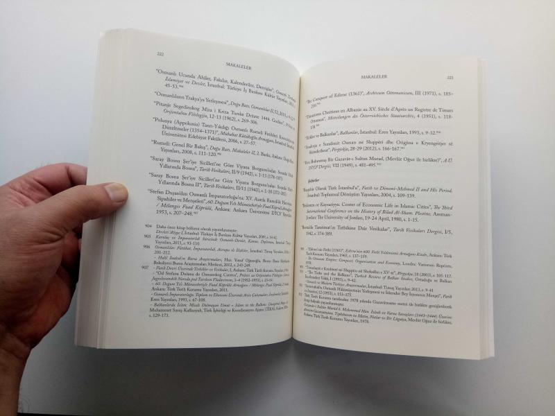 Prof. Dr. Halil İnalcık, 1935 yılında Ankara Üniversitesi Dil ve Tarih-Coğrafya Fakültesi Tarih Bölümünde başlayan ve vefat ettiği 2016 yılına kadar aralıksız 81 yıl süren akademik çalışmalarıyla, 42’si telif eser, 28’i makale derlemelerinden oluşan 80 kitap, çoğunluğu Türkçe ve İngilizce olmak üzere farklı dillerde 428 makale (çevirileriyle birlikte), 150 ansiklopedi maddesi, 40 kitap tanıtma, editörlük, yönettiği tezler ile bilim dünyasına katkıda bulunmuştur. Bu kitap ile Prof. Dr. Halil İnalcık’ın eserleri bir sistem içinde, araştırmacıların kullanımına sunulmuştur.