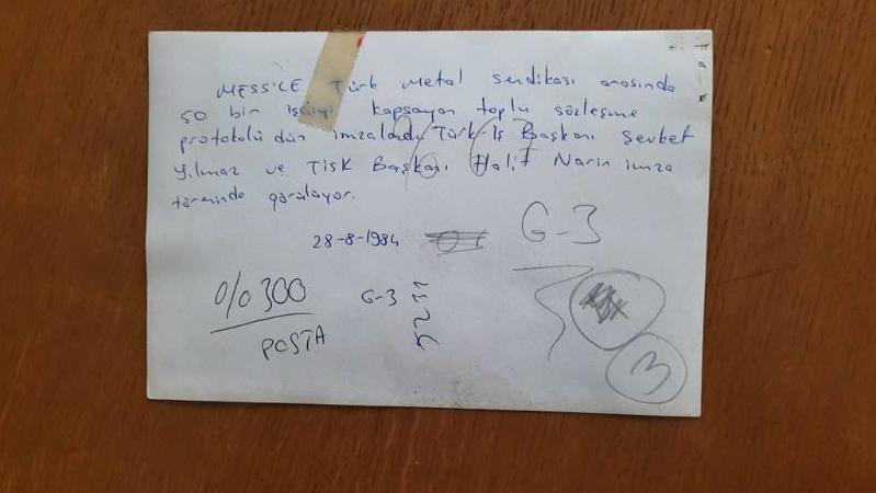 HALİT NARİN ve ŞEVKET YILMAZ'IN ORİJİNAL FOTOĞRAFI - 18 x 12 cm EBADINDA - TÜRK-İŞ GENEL BAŞKANI ŞEVKET YILMAZ ve TİSK BAŞKANI HALİT NARİN, MESS'LE TÜRK METAL SENDİKASI ARASINDA 50 BİN İŞÇİYİ KAPSAYAN TOPLU SÖZLEŞME PROTOKOLÜNDE İMZA ATARLARKEN ÇEKİLMİŞ BİR KARE. 28 AĞUSTOS 1984, en son 2 ay önce güncellenmiştir.
