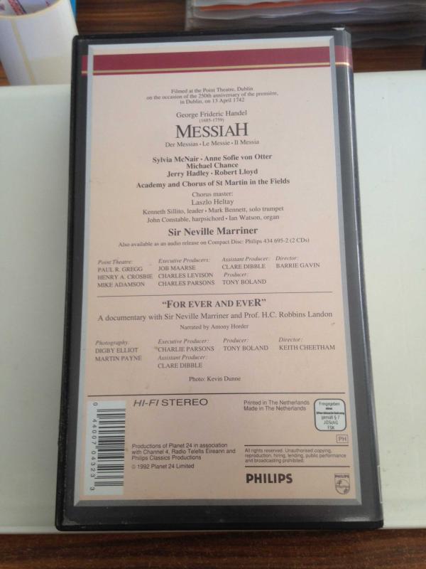 HANDEL MESSIAH - the 250 th Anniversary Performance / DUBLIN 1742 - 1992 / Video Classics / VHS, en son 1 yıl önce güncellenmiştir.