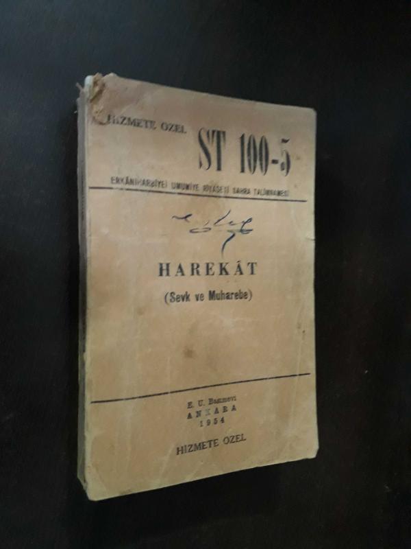HAREKAT (SEVK VE MUHAREBE) ST 100-5 ERKANI HARBİYEİ UMUMİYE RİYASETİ SAHRA TALİMNAMESİ, YOK tarafından kaleme alınmıştır. Kitap 1954 yılında ERKANI HARBİYEİ UMUMİYE tarafından yayınlanmıştır. 628 sayfadır. HAREKAT (SEVK VE MUHAREBE) ST 100-5 ERKANI HARBİYEİ UMUMİYE RİYASETİ SAHRA TALİMNAMESİ adlı eser Türkçe dilindedir.