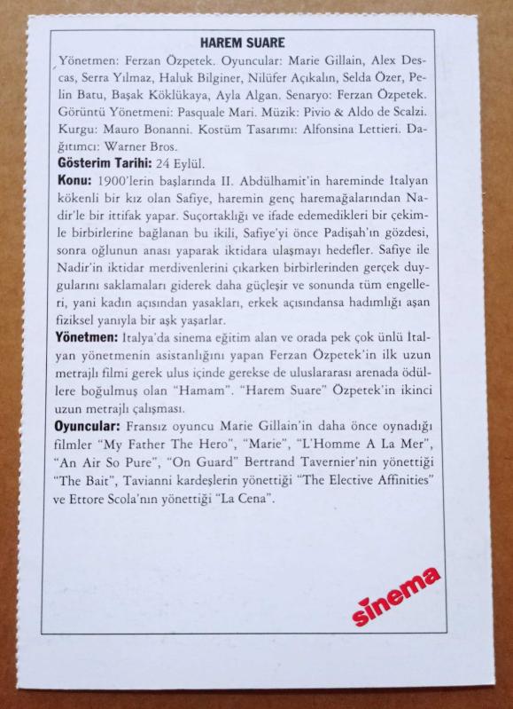 HAREM SUARE - Ferzan Özpetek filmi ~ [ SİNEMA KARTI ] başlıklı ürün, Efemera, Müzik, Sinema > Sinema, Film, Dizi > Lobi Kart ve Koleksiyon Kartı kategorisi altında İkinci El olarak satılmaktadır.