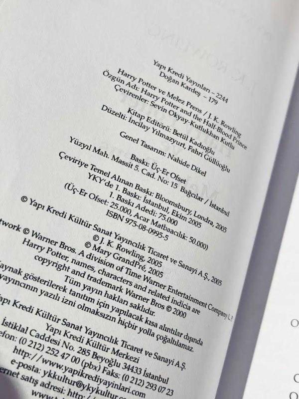 HARRY POTTER VE MELEZ PRENS (1. BASKI ORJİNAL AYRAÇLI), J.K.ROWLING tarafından kaleme alınmıştır. Kitap 2005 yılında Y.K.Y tarafından [İSTANBUL] yayınlanmıştır. Bu baskının çevirisi Sevin Okyay-Kutlukhan Kutlu tarafından yapılmıştır. 594 sayfadır. HARRY POTTER VE MELEZ PRENS (1. BASKI ORJİNAL AYRAÇLI) adlı eser Türkçe dilindedir.