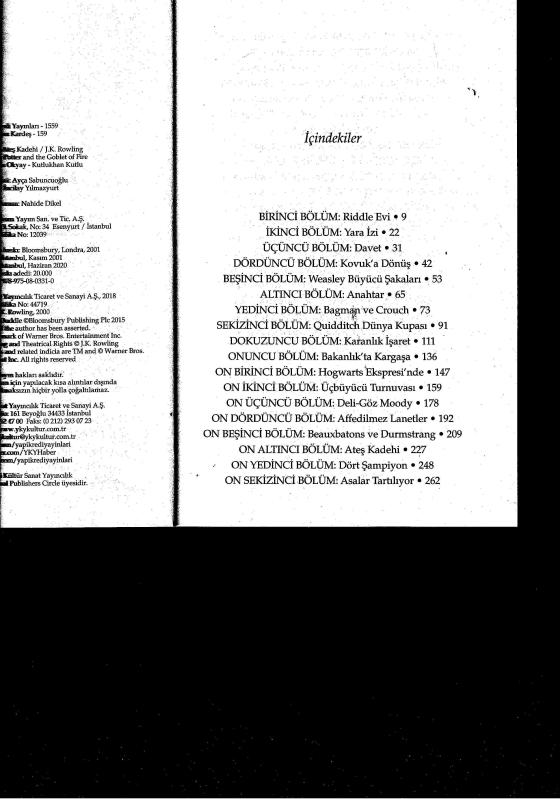HARRY POTTER ve ATEŞ KADEHİ, J. K. ROWLING tarafından kaleme alınmıştır. Kitap 2020 yılında YAPI KREDİ YAYINLARI tarafından [İSTANBUL] yayınlanmıştır. Bu baskının çevirisi SEVİN OKYAY - KUTLUKHAN KUTLU tarafından yapılmıştır. 660 sayfadır. HARRY POTTER ve ATEŞ KADEHİ adlı eser Türkçe dilindedir.