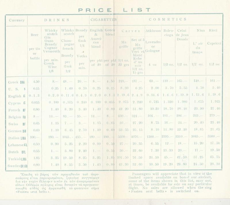 HAVACILIK TARİHİ - OLYMPIC AIRWAYS HAVAYOLLARI İÇKİ SİGARA KOZMETİK PARFÜM MENÜSÜ - 1960 LI YILLAR - UÇAK PİLOT, 9 ay önce satışa sunulmuştur.