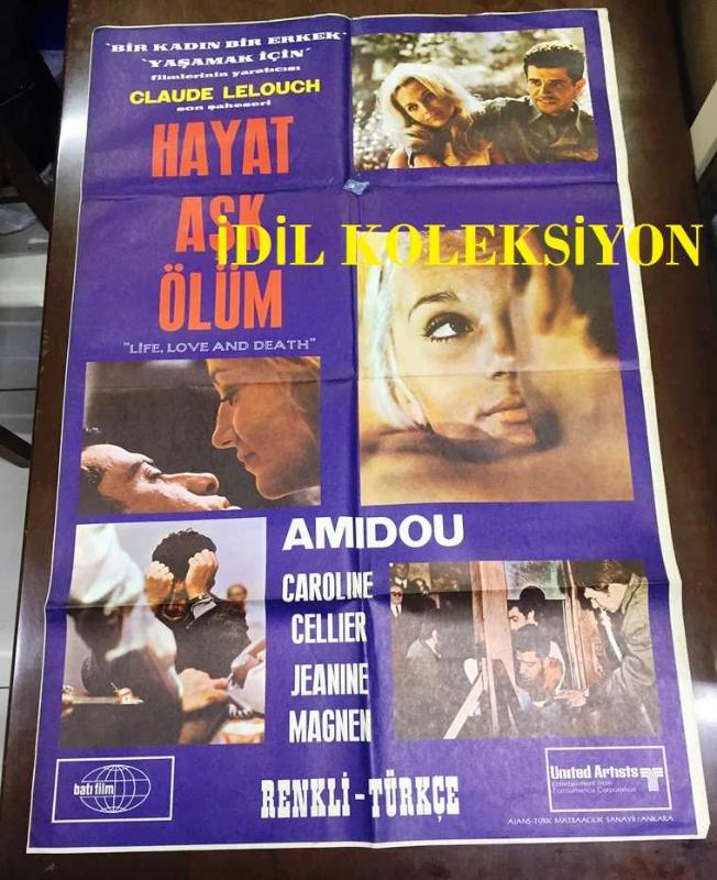 HAYAT AŞK ÖLÜM, ORİJİNAL SİNEMA AFİŞİ - La vie, l'amour, la mort, 1969, FİLM AFİŞİ / POSTERİ - BÜYÜK BOY - ORİJİNAL - 100 X 67 cm EBADINDA - Original Turkish Big Size Movie Poster - Claude Lelouch, Amidou, Caroline Cellier, Janine Magnan, Marcel Bozzuffi, Pierre Zimmer, Catherine Samie, Lisette Bersy, Albert Naud, Jean-Pierre Sloan