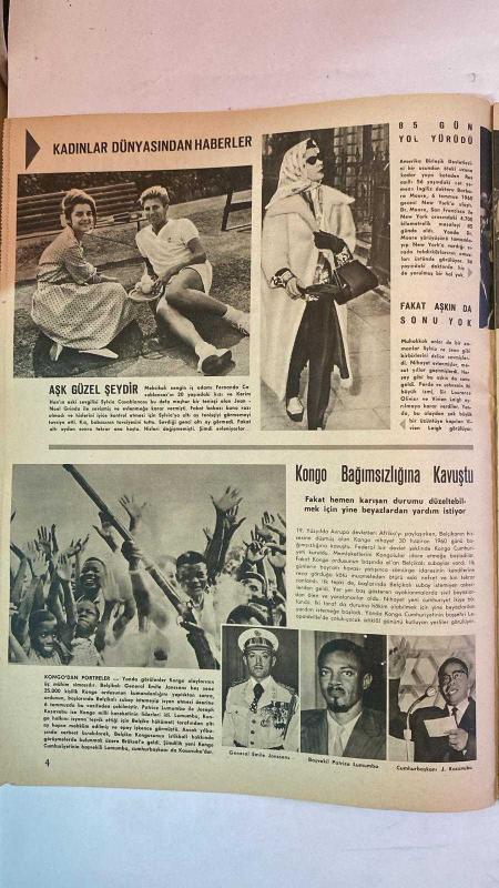 HAYAT HAFTALIK HABER MECMUA, DERGİSİ - ORTA SAYFA POSTER : BÖREK YİYEN ÇOCUKLAR BARTOLOME ESTEBAN (1618-1682) MURILLO - SIRA NO: 198 – SAYI: 30 – TARİH: 22 TEMMUZ 1960 CEMAL GÜRSEL – TERRY MOORE – MRS. JANE BALDASARE – BETTINA – ALİ HAN – SYLVIA CASABLANCAS – JEAN-NOEL GRINDA – VIVIEN LEIGH – LAURENCE OLIVIER – BARBARA MOORE – PATRICE LUMUMBA – JOSEPH KASAVUBU – EMILE JANSSENS - BERNARD SHAW - NUH’UN GEMİSİ OLDUĞU SANILAN ŞEKİL ÜZERİNE DOĞU BEYAZIT’TA YAPILAN ARAŞTIRMALAR – ORTA SAYFADA 5 RENKLİ TABLO REPRODUKSİYONU – CEMAL GÜRSEL’İN İSTANBUL ZİYARETİ VE GÜRSEL KUPASI MAÇI – KONGO’NUN BAĞIMSIZLIĞI VE LUMUMBA-KASAVUBU DÖNEMİ – KONGO’DA BEYAZ SUBAYLARA KARŞI AYAKLANMA – KADINLAR DÜNYASINDAN HABERLER: TERRY MOORE, SYLVIA CASABLANCAS, BETTINA – VIVIEN LEIGH VE LAURENCE OLIVIER’İN AYRILIĞI – MRS. JANE BALDASARE’NİN MANŞ DENİZİ SU ALTINDAN GEÇİŞ DENEMESİ – BARBARA MOORE’UN 4700 KM’LİK YÜRÜYÜŞÜ – SOHBET KÖŞESİ: YAZ MEVSİMİ VE İYİ İNSANLAR ÜZERİNE – ASTROLOJİ: ASLAN BURCU - TAM TAKIM 48 SAYFA adlı eser, Kitap > Süreli Yayınlar > Dergiler > Magazin, Moda kategorisinde İkinci El olarak satıştadır.