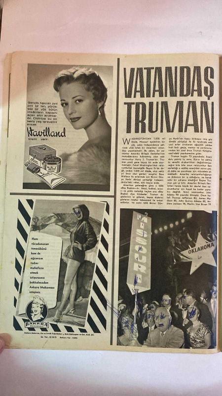 HAYAT HAFTALIK HABER MECMUA, DERGİSİ - ORTA SAYFA POSTER : ÇIPLAK IBRAHIM CALLI Icalle Orijinal abadi 146x995 santimetra Tablo, resim ve Haykel Müzesindedir. - SIRA NO: 68 TARİH: 24 OCAK 1958 SAYI: 68 İBRAHİM ÇALLI - KONRAD ADENAUER - SUSAN HAYWARD - JAYNE MANSFIELD - AVA GARDNER - ŞEVKET RADO - HARRY S. TRUMAN - BESS TRUMAN - MARGARET TRUMAN - CLIFTON DANIEL - GEORGE WALLACE - FRANK WALLACE - ETHEL NOLAND - NELLIE NOLAND İBRAHİM ÇALLI’NIN ORİJİNAL RENKLİ “ÇIPLAK” TABLOSU - KONRAD ADENAUER’İN 82. YAŞ KUTLAMASI VE BONN’DAKİ RESMİ KABUL - HOLLYWOOD YILDIZLARININ FİZİKSEL ÖLÇÜLERİ: SUSAN HAYWARD, JAYNE MANSFIELD, AVA GARDNER - ÇOCUKLAR VE PENGUENLER ÜZERİNDEN GÖRSEL BENZERLİKLER - ŞEVKET RADO’DAN “AYDINLATMAK VAZİFESİ” ÜZERİNE SOHBET YAZISI: MÜNEVVERLERİN TOPLUMSAL SORUMLULUĞU - HARRY S. TRUMAN’IN SİYASET SONRASI YAŞAMI, TRUMAN KÜTÜPHANESİ VE INDEPENDENCE’DA GÜNLÜK HAYATI - TRUMAN’IN AİLE İLİŞKİLERİ, KOMŞULARI VE SPOR ALIŞKANLIKLARI - BEYAZ EV’DEN SONRAKİ - EKSİKSİZ TAM TAKIM 48 SAYFA adlı eser, Kitap > Süreli Yayınlar > Dergiler > Magazin, Moda kategorisinde İkinci El olarak satıştadır.