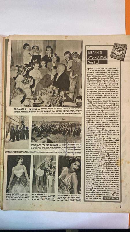 HAYAT HAFTALIK HABER MECMUA, DERGİSİ - ORTA SAYFA POSTER : ÇIPLAK IBRAHIM CALLI Icalle Orijinal abadi 146x995 santimetra Tablo, resim ve Haykel Müzesindedir. - SIRA NO: 68 TARİH: 24 OCAK 1958 SAYI: 68 İBRAHİM ÇALLI - KONRAD ADENAUER - SUSAN HAYWARD - JAYNE MANSFIELD - AVA GARDNER - ŞEVKET RADO - HARRY S. TRUMAN - BESS TRUMAN - MARGARET TRUMAN - CLIFTON DANIEL - GEORGE WALLACE - FRANK WALLACE - ETHEL NOLAND - NELLIE NOLAND İBRAHİM ÇALLI’NIN ORİJİNAL RENKLİ “ÇIPLAK” TABLOSU - KONRAD ADENAUER’İN 82. YAŞ KUTLAMASI VE BONN’DAKİ RESMİ KABUL - HOLLYWOOD YILDIZLARININ FİZİKSEL ÖLÇÜLERİ: SUSAN HAYWARD, JAYNE MANSFIELD, AVA GARDNER - ÇOCUKLAR VE PENGUENLER ÜZERİNDEN GÖRSEL BENZERLİKLER - ŞEVKET RADO’DAN “AYDINLATMAK VAZİFESİ” ÜZERİNE SOHBET YAZISI: MÜNEVVERLERİN TOPLUMSAL SORUMLULUĞU - HARRY S. TRUMAN’IN SİYASET SONRASI YAŞAMI, TRUMAN KÜTÜPHANESİ VE INDEPENDENCE’DA GÜNLÜK HAYATI - TRUMAN’IN AİLE İLİŞKİLERİ, KOMŞULARI VE SPOR ALIŞKANLIKLARI - BEYAZ EV’DEN SONRAKİ - EKSİKSİZ TAM TAKIM 48 SAYFA, ŞEVKET RADO tarafından kaleme alınmıştır. Eser UĞUR GÜNERİ editörlüğünde hazırlanmıştır. Kitap Doğan Kardeş yayınları tarafından yayınlanmıştır. 48 sayfadır. HAYAT HAFTALIK HABER MECMUA, DERGİSİ - ORTA SAYFA POSTER : ÇIPLAK IBRAHIM CALLI Icalle Orijinal abadi 146x995 santimetra Tablo, resim ve Haykel Müzesindedir. - SIRA NO: 68 TARİH: 24 OCAK 1958 SAYI: 68 İBRAHİM ÇALLI - KONRAD ADENAUER - SUSAN HAYWARD - JAYNE MANSFIELD - AVA GARDNER - ŞEVKET RADO - HARRY S. TRUMAN - BESS TRUMAN - MARGARET TRUMAN - CLIFTON DANIEL - GEORGE WALLACE - FRANK WALLACE - ETHEL NOLAND - NELLIE NOLAND İBRAHİM ÇALLI’NIN ORİJİNAL RENKLİ “ÇIPLAK” TABLOSU - KONRAD ADENAUER’İN 82. YAŞ KUTLAMASI VE BONN’DAKİ RESMİ KABUL - HOLLYWOOD YILDIZLARININ FİZİKSEL ÖLÇÜLERİ: SUSAN HAYWARD, JAYNE MANSFIELD, AVA GARDNER - ÇOCUKLAR VE PENGUENLER ÜZERİNDEN GÖRSEL BENZERLİKLER - ŞEVKET RADO’DAN “AYDINLATMAK VAZİFESİ” ÜZERİNE SOHBET YAZISI: MÜNEVVERLERİN TOPLUMSAL SORUMLULUĞU - HARRY S. TRUMAN’IN SİYASET SONRASI YAŞAMI, TRUMAN KÜTÜPHANESİ VE INDEPENDENCE’DA GÜNLÜK HAYATI - TRUMAN’IN AİLE İLİŞKİLERİ, KOMŞULARI VE SPOR ALIŞKANLIKLARI - BEYAZ EV’DEN SONRAKİ - EKSİKSİZ TAM TAKIM 48 SAYFA adlı eser Türkçe dilindedir.