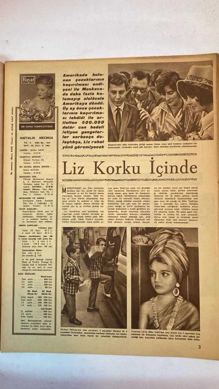 HAYAT HAFTALIK HABER MECMUA, DERGİSİ - ORTA SAYFA POSTER : DENİZİN YÜKSELİŞİ EDOUARD MANET - SIRA NO: 253 SAYI: 33 - 10 AĞUSTOS 1961 - LIZ TAYLOR - EDDIE FISHER - LIZA TODD - MICHAEL WILDING - CHRISTOPHER WILDING - SADUN ALTUNA - GIL DELAMARE - MADAM SPITZMÜLLER - PRENSES FAZILA - PRENSES HANZADE - REFİK TULGA - JALE TULGA - EDOUARD MANET - MICHAEL TODD - SANTA MARIA GEMISI - FRANSIZ SEFARETI - HACETTEPE ÇOCUK HASTANESI - TİFDRUK MATBAACILIK SANAYİİ - KAISERPRESS FOTOĞRAF - DENİZİN YÜKSELİŞİ - BİNBİR GECE SARAYI - MEVSİMİN MUHTEŞEM BALOSU - KIZIM SANA SÖYLÜYORUM SOHBET KÖŞESİ - ÇILGIN GAZETECİ - OTOMOBİL EMNİYET KEMERİ - MOSKOVA FİLM FESTİVALİ - PARADISE VALLEY ÇİFTLİĞİ - NAPOLİTEN ŞARKILAR - FRANSIZ ŞAMPANYASI - FALCI - YARDIM BALOSU - KLEOPATRA KIYAFETİ - TAM TAKIM 48 SAYFA, ŞEVKET RADO tarafından kaleme alınmıştır. Eser UĞUR GÜNERİ editörlüğünde hazırlanmıştır. Kitap Doğan Kardeş yayınları tarafından yayınlanmıştır. 48 sayfadır. HAYAT HAFTALIK HABER MECMUA, DERGİSİ - ORTA SAYFA POSTER : DENİZİN YÜKSELİŞİ EDOUARD MANET - SIRA NO: 253 SAYI: 33 - 10 AĞUSTOS 1961 - LIZ TAYLOR - EDDIE FISHER - LIZA TODD - MICHAEL WILDING - CHRISTOPHER WILDING - SADUN ALTUNA - GIL DELAMARE - MADAM SPITZMÜLLER - PRENSES FAZILA - PRENSES HANZADE - REFİK TULGA - JALE TULGA - EDOUARD MANET - MICHAEL TODD - SANTA MARIA GEMISI - FRANSIZ SEFARETI - HACETTEPE ÇOCUK HASTANESI - TİFDRUK MATBAACILIK SANAYİİ - KAISERPRESS FOTOĞRAF - DENİZİN YÜKSELİŞİ - BİNBİR GECE SARAYI - MEVSİMİN MUHTEŞEM BALOSU - KIZIM SANA SÖYLÜYORUM SOHBET KÖŞESİ - ÇILGIN GAZETECİ - OTOMOBİL EMNİYET KEMERİ - MOSKOVA FİLM FESTİVALİ - PARADISE VALLEY ÇİFTLİĞİ - NAPOLİTEN ŞARKILAR - FRANSIZ ŞAMPANYASI - FALCI - YARDIM BALOSU - KLEOPATRA KIYAFETİ - TAM TAKIM 48 SAYFA adlı eser Türkçe dilindedir.