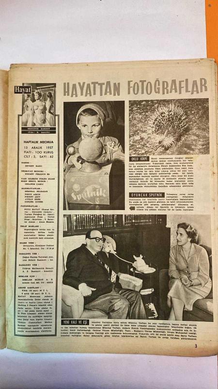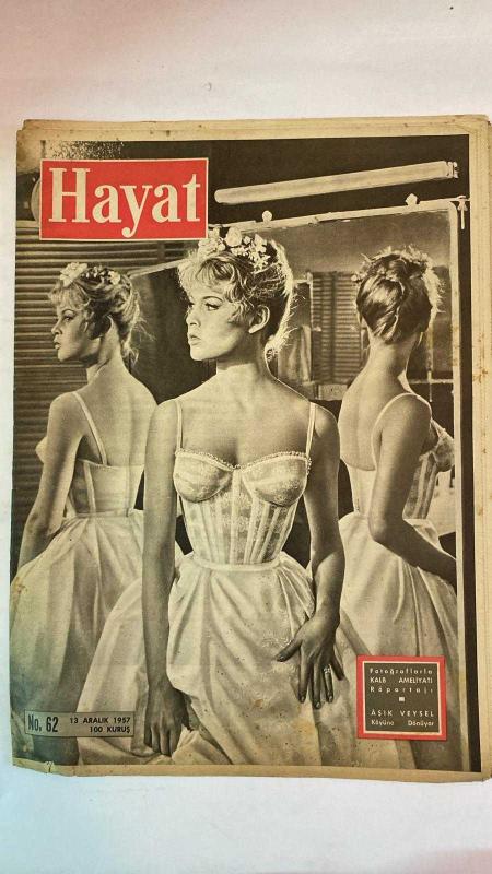 HAYAT HAFTALIK HABER MECMUA, DERGİSİ - ORTA SAYFA POSTER : İstanbulun Panoraması - SIRA NO: 62 SAYI: 62 TARİH: 13 ARALIK 1957 HİKMET FERİDUN ES – İBRAHİM ÇAMLI – SEMİRAL BİLBAŞAR – FİRUZ ASKIN – FİKRET ARIT – AYHAN ERER – DİNÇER GÜNER – BRIGITTE BARDOT – AŞIK VEYSEL – MÜMTAS TARHAN – BAYAN TARHAN – ŞEREF AKDİK – PROF. FAZIL NOYAN – MUAMMER KARACA KALP AMELİYATI RÖPORTAJI – AŞIK VEYSEL KÖYÜNE DÖNÜYOR – BRIGITTE BARDOT – YENİ VALİ VE EŞİ – OKLU KİRPİ – OYUNCAK SPUTNIK – ALTMIŞ ASIRLIK RESİM SERGİSİ – NAZİLLİ’DE OTO-AT – FRANKFURT’TA DELİLİK GÜNÜ – DENİZ-KIZI OTO-AT – İNSANLAR İYİ MİDİR FENA MIDIR – SOHBET KÖŞESİ – ROTENBURG’DA KÖPRÜ MAKYAJI – NOEL HAZIRLIKLARI – HAKEM-SEYİRCİ MÜNAKAŞASI – DENİZ VOLKSWAGENİ – ATOM LOKANTASI – TAMEK MARMELATLARI – KOKTEYL DİPLOMASİSİ - EKSİKSİZ TAM TAKIM 48 SAYFA, ŞEVKET RADO tarafından kaleme alınmıştır. Eser UĞUR GÜNERİ editörlüğünde hazırlanmıştır. Kitap Doğan Kardeş yayınları tarafından yayınlanmıştır. 48 sayfadır. HAYAT HAFTALIK HABER MECMUA, DERGİSİ - ORTA SAYFA POSTER : İstanbulun Panoraması - SIRA NO: 62 SAYI: 62 TARİH: 13 ARALIK 1957 HİKMET FERİDUN ES – İBRAHİM ÇAMLI – SEMİRAL BİLBAŞAR – FİRUZ ASKIN – FİKRET ARIT – AYHAN ERER – DİNÇER GÜNER – BRIGITTE BARDOT – AŞIK VEYSEL – MÜMTAS TARHAN – BAYAN TARHAN – ŞEREF AKDİK – PROF. FAZIL NOYAN – MUAMMER KARACA KALP AMELİYATI RÖPORTAJI – AŞIK VEYSEL KÖYÜNE DÖNÜYOR – BRIGITTE BARDOT – YENİ VALİ VE EŞİ – OKLU KİRPİ – OYUNCAK SPUTNIK – ALTMIŞ ASIRLIK RESİM SERGİSİ – NAZİLLİ’DE OTO-AT – FRANKFURT’TA DELİLİK GÜNÜ – DENİZ-KIZI OTO-AT – İNSANLAR İYİ MİDİR FENA MIDIR – SOHBET KÖŞESİ – ROTENBURG’DA KÖPRÜ MAKYAJI – NOEL HAZIRLIKLARI – HAKEM-SEYİRCİ MÜNAKAŞASI – DENİZ VOLKSWAGENİ – ATOM LOKANTASI – TAMEK MARMELATLARI – KOKTEYL DİPLOMASİSİ - EKSİKSİZ TAM TAKIM 48 SAYFA adlı eser Türkçe dilindedir.